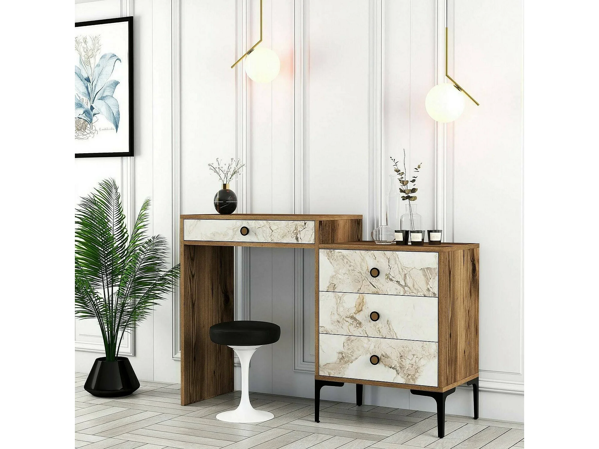 Konsolentisch Dmuntean, Tisch, Eingangskonsole, Regal, 124x40 h85 cm, Walnuss und Weiß