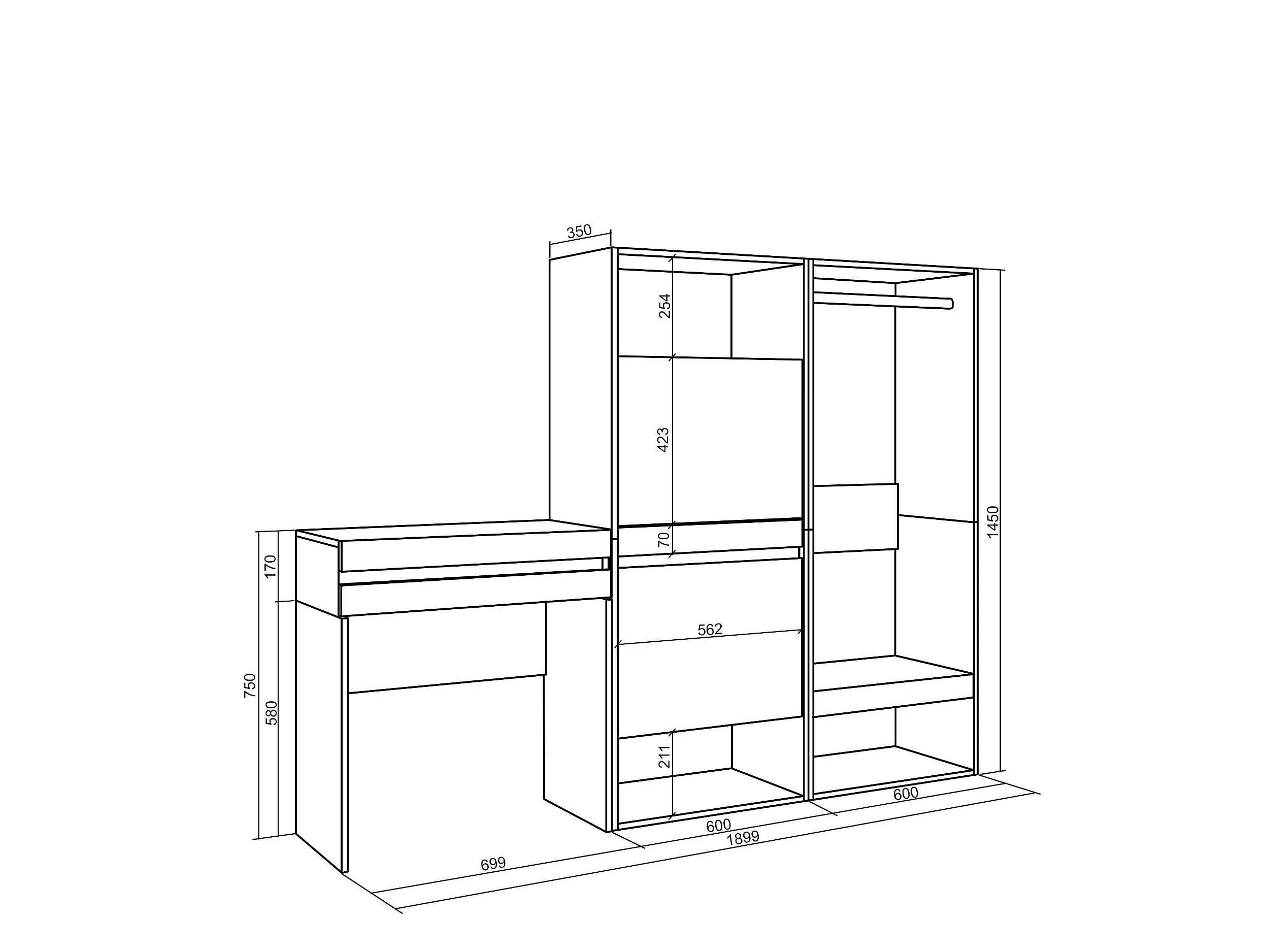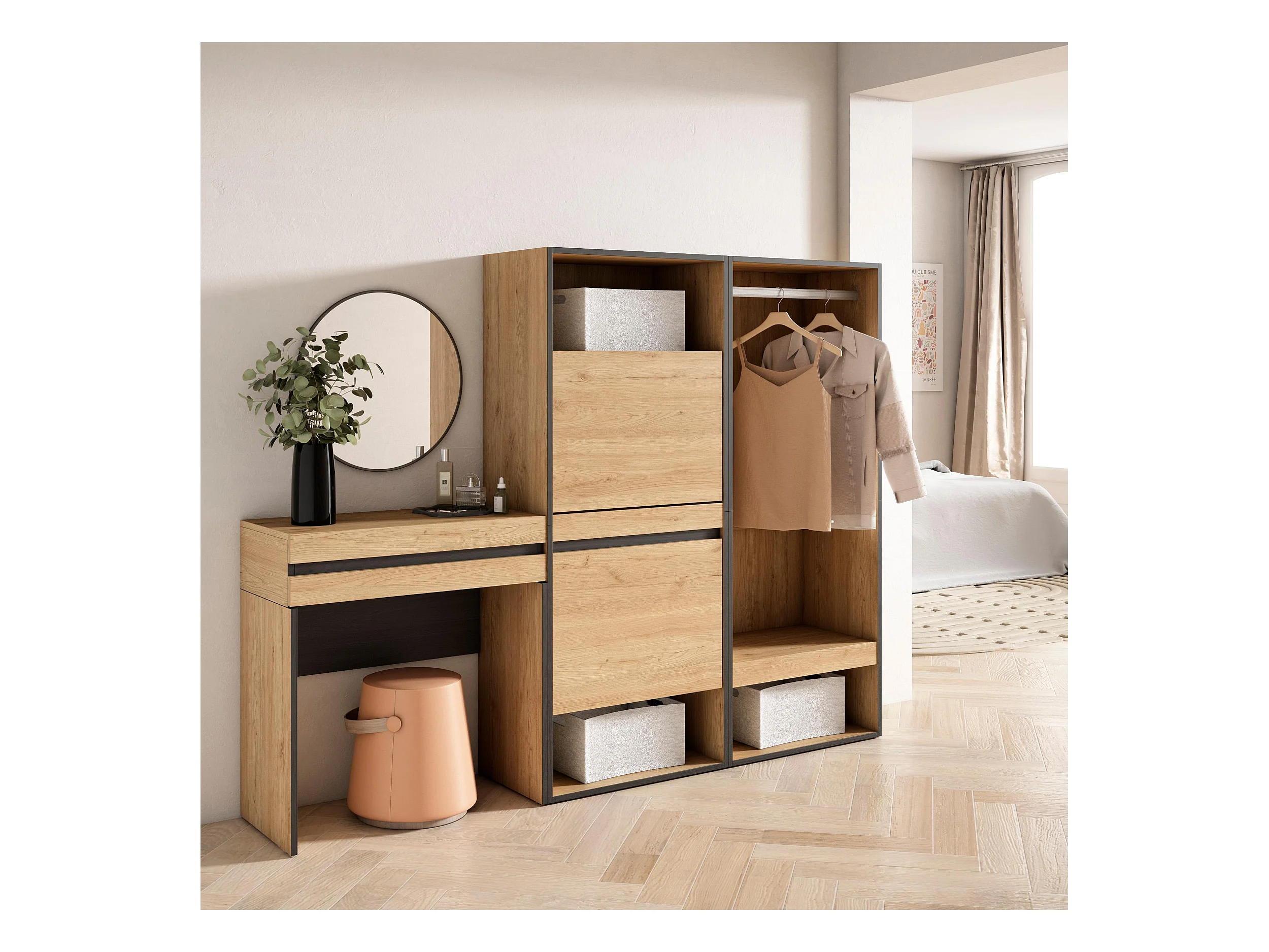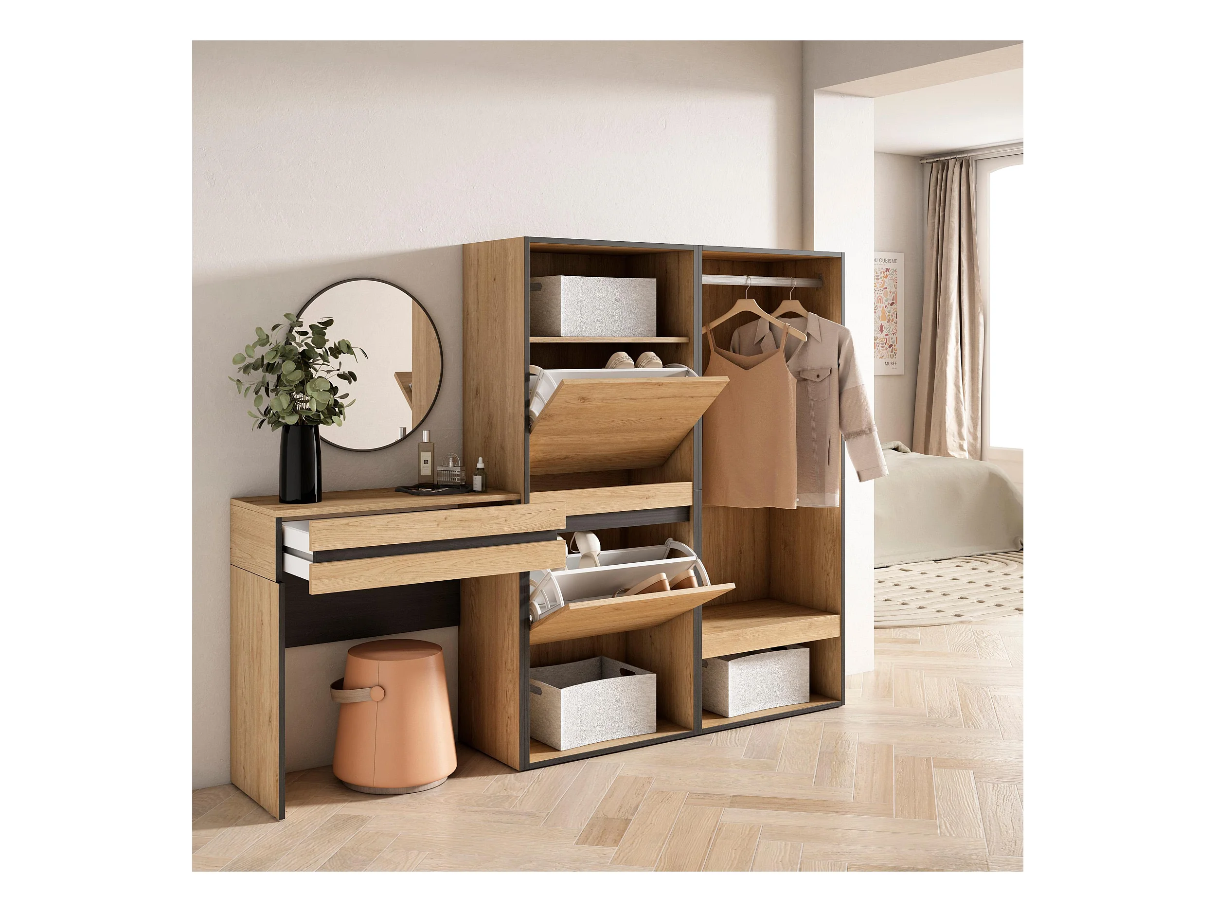 Konsolentisch, Flurtisch, 190x35x145cm, mit Schublade, Schuhschrank, Offener Kleiderschrank, Eiche