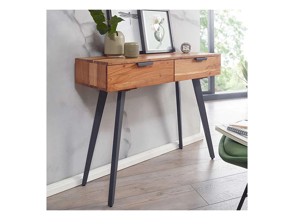 Konsolentisch mit Schubladen aus Akazie Massivholz Metall
