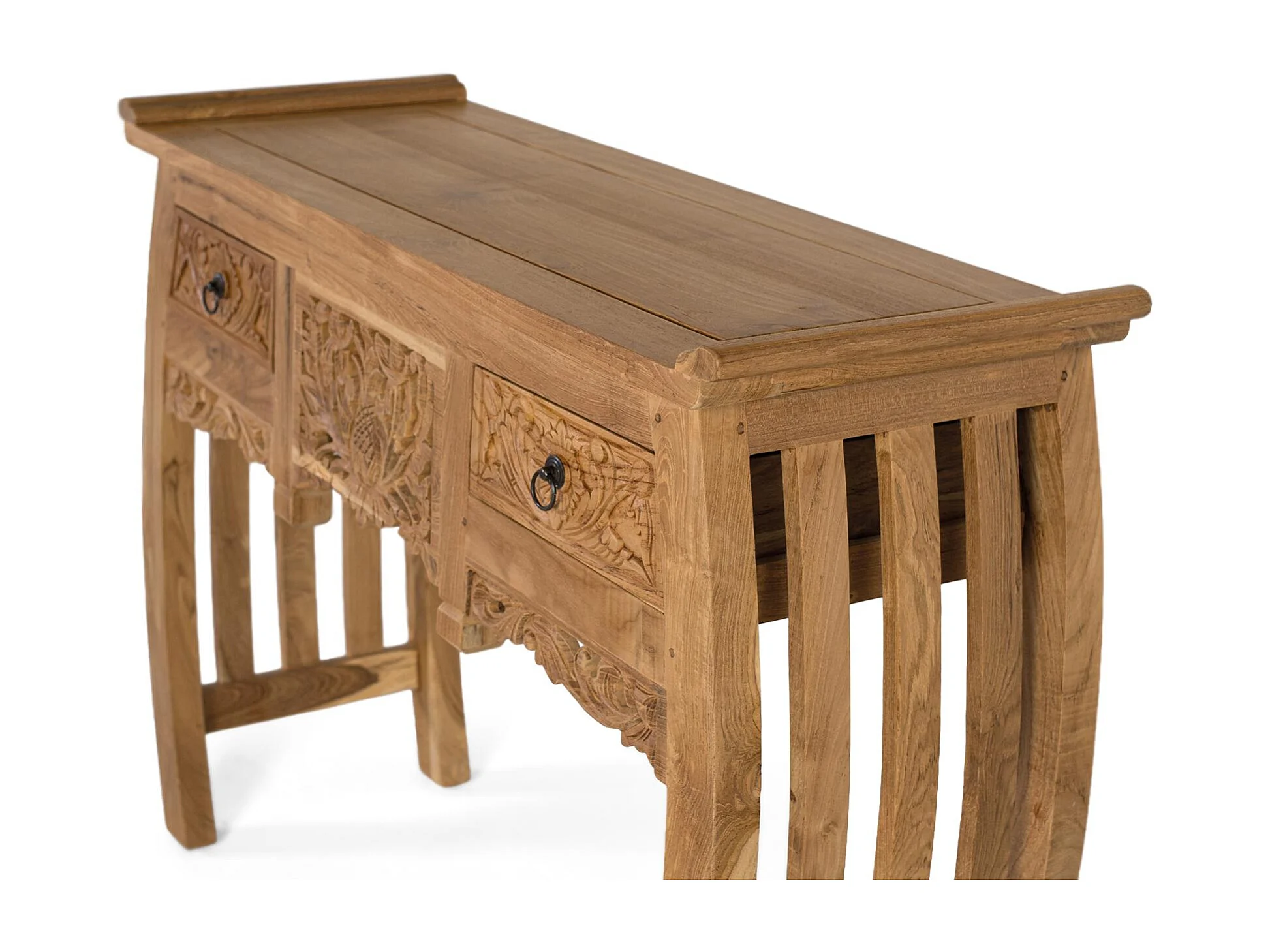 Konsolentisch mit zwei Schubladen aus massivem Teakholz 100 cm