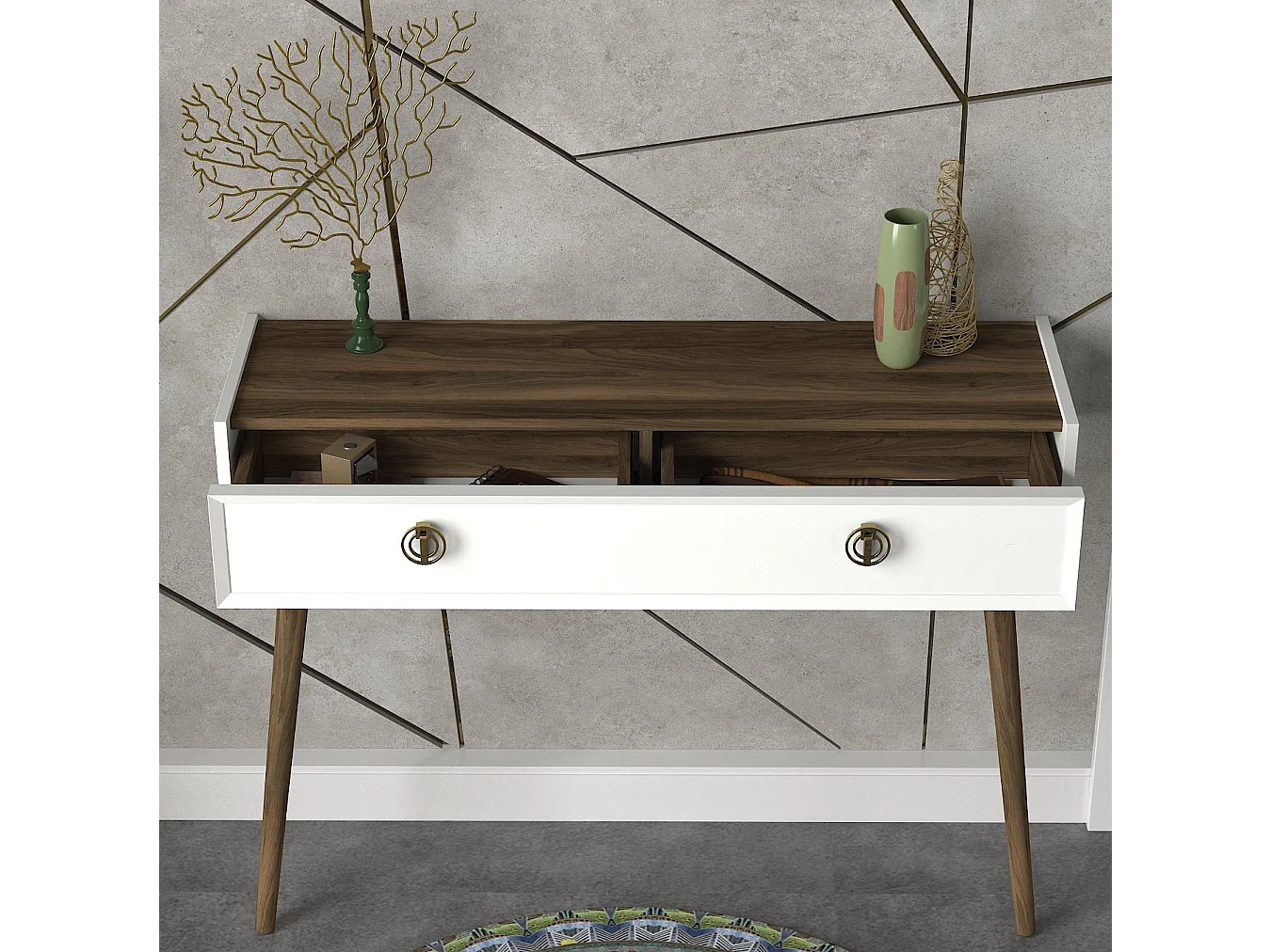 Konsolentisch Nadya Weiß Walnuss