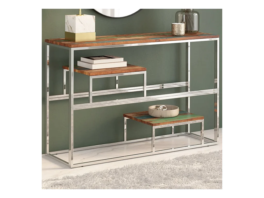 Konsolentisch Silbern Edelstahl und Altholz Massiv