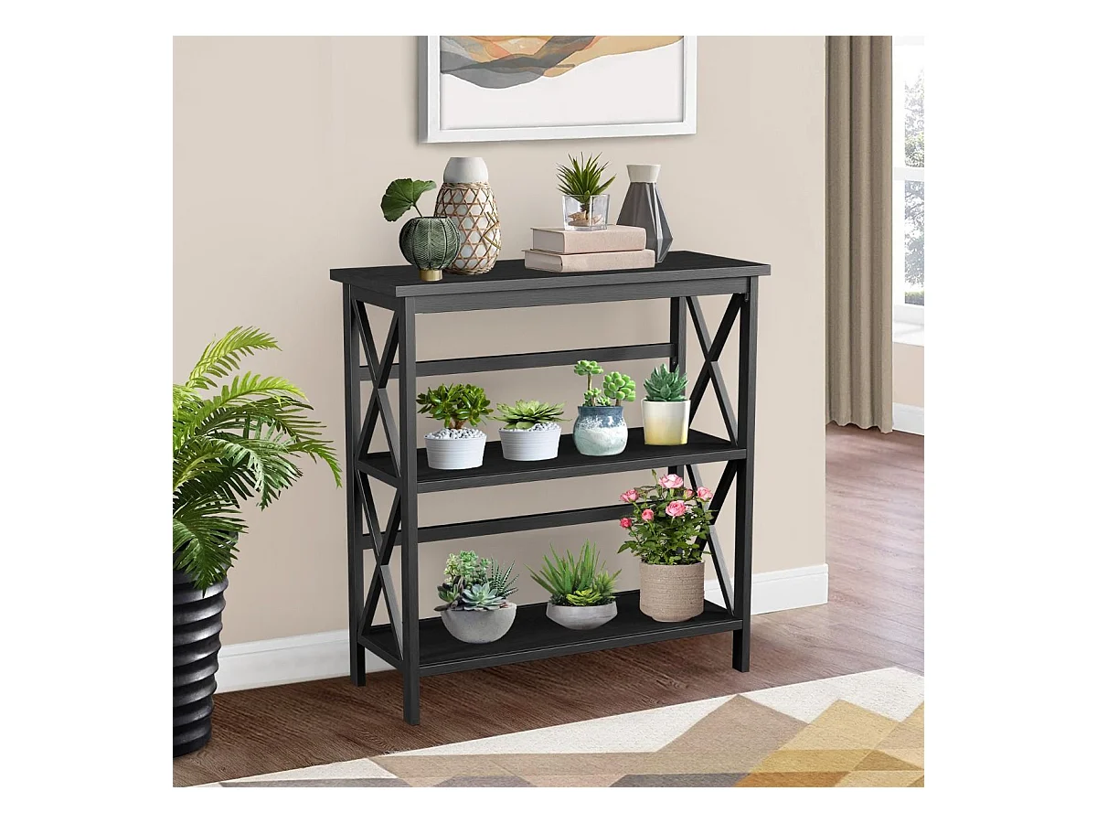 Konsolentisch aus Holz mit Kippschutz & Stabilem Rahmen Moderner Beistelltisch 79 x 32 x 86 cm Schwarz