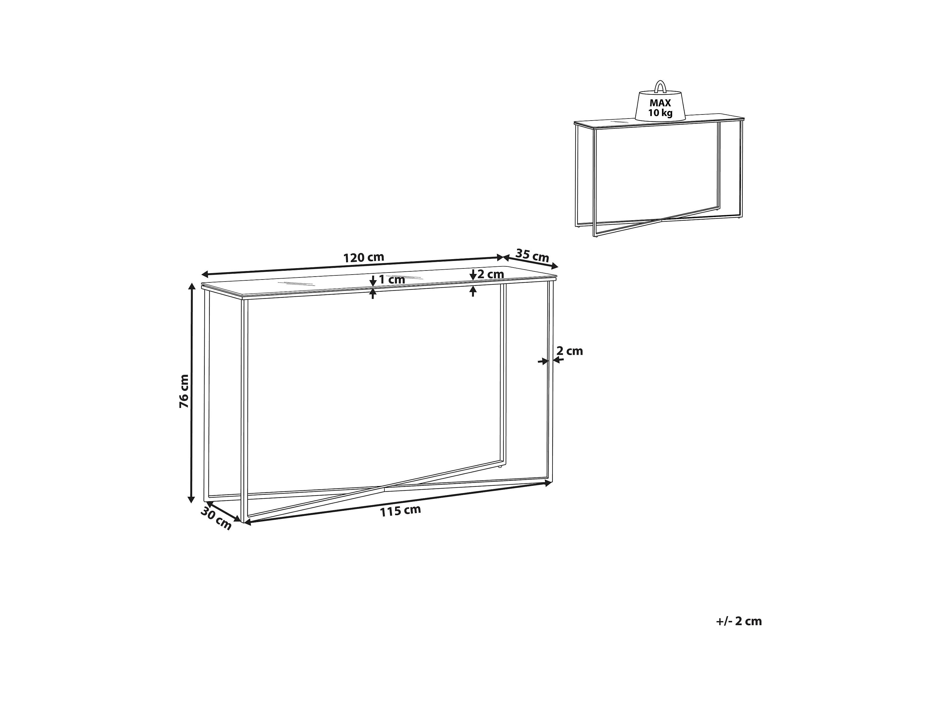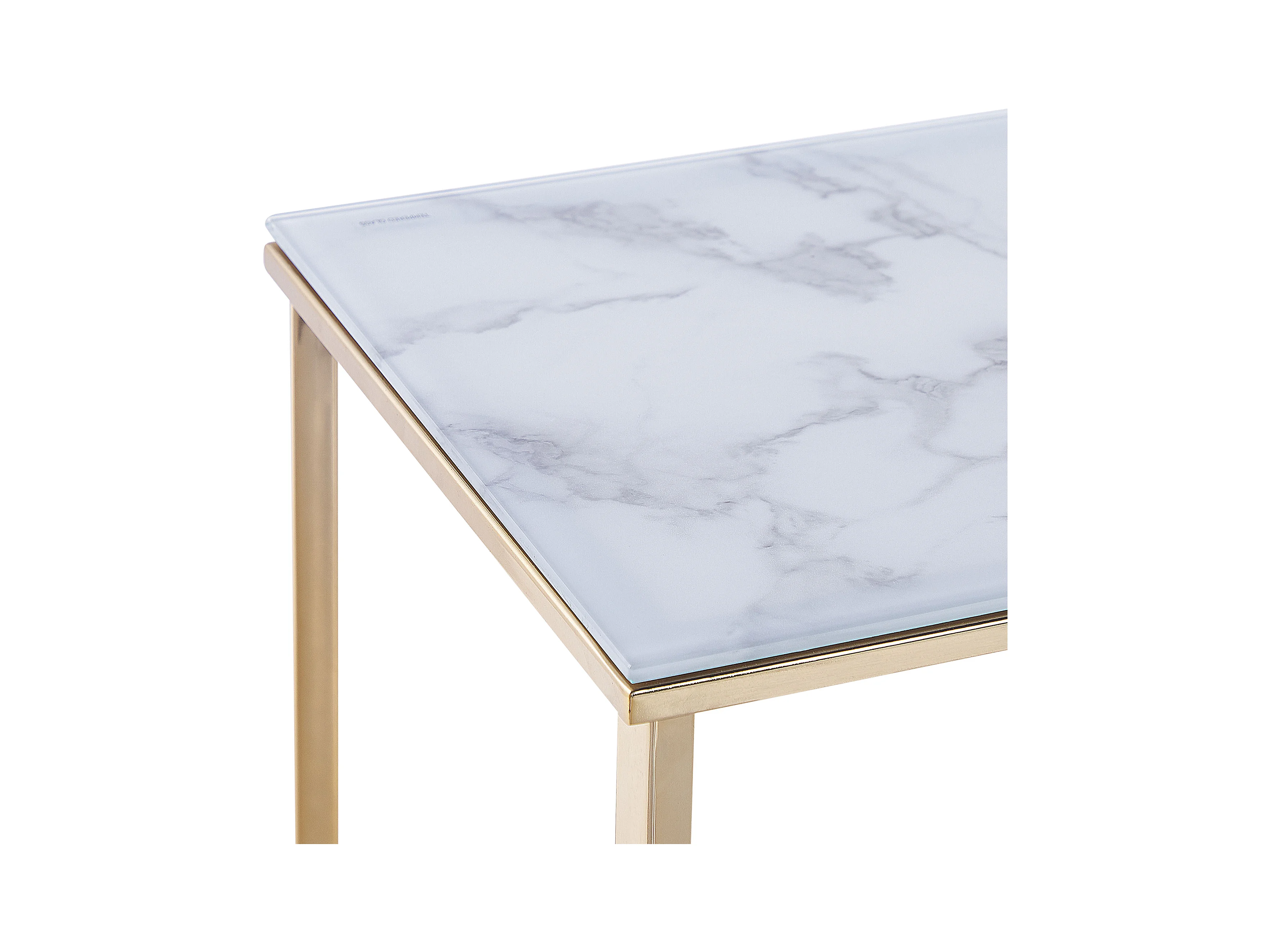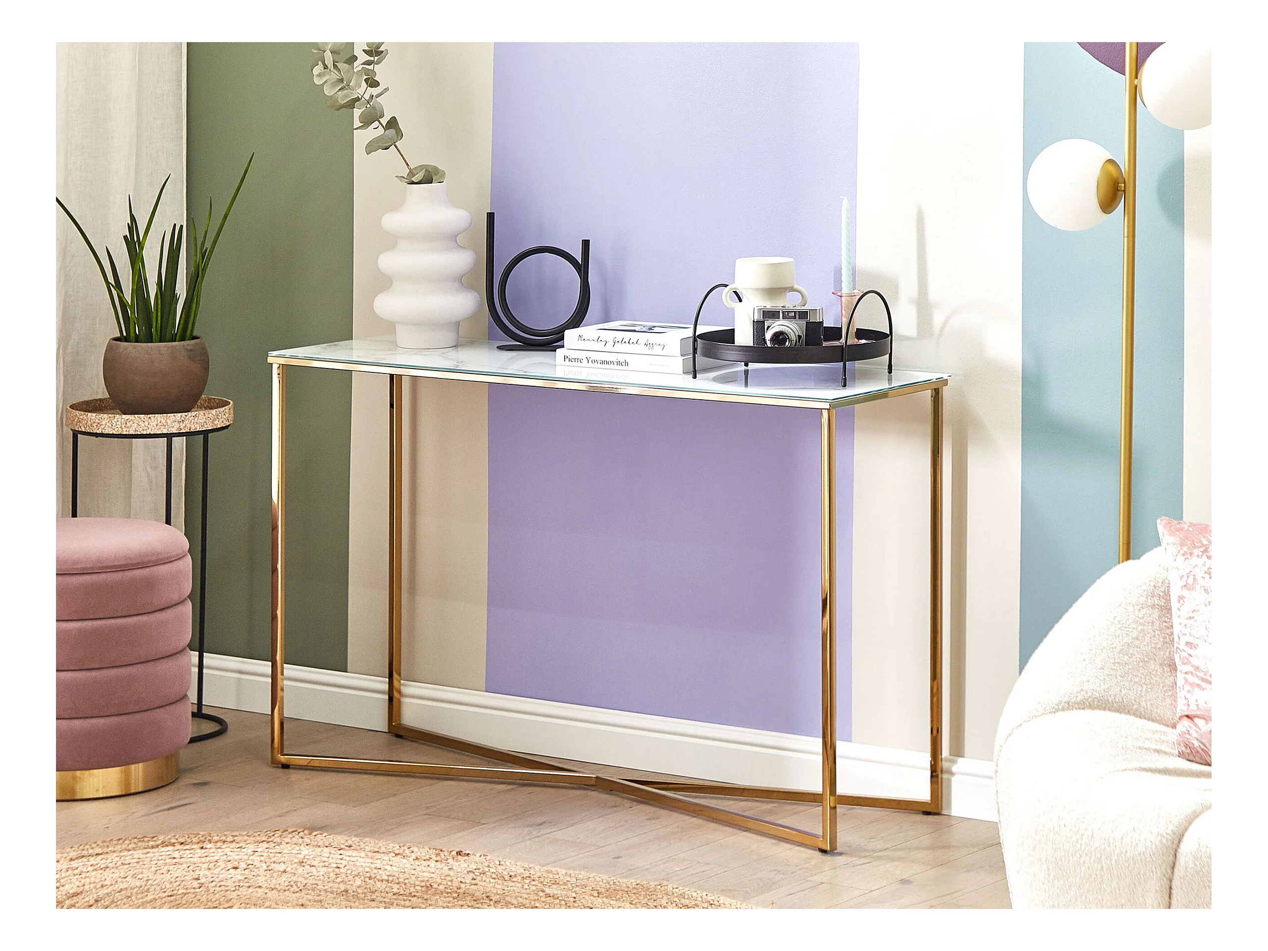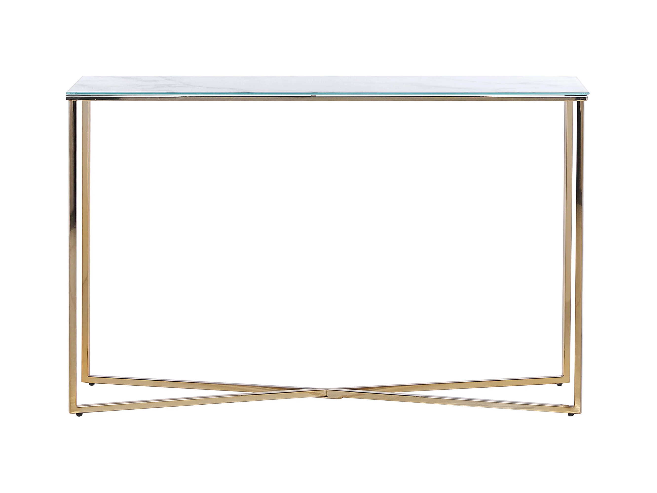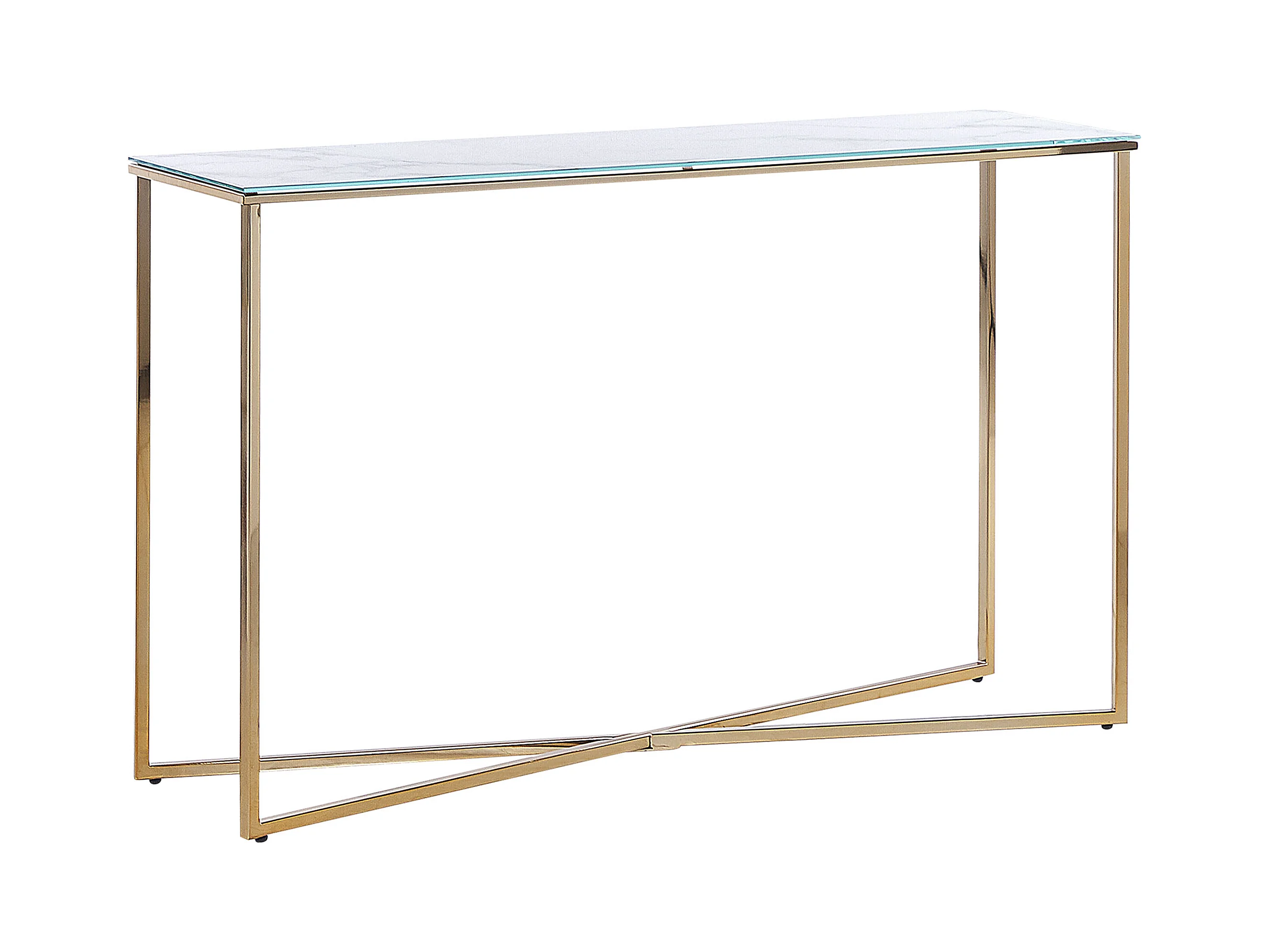 Schmaler Konsolentisch mit Marmor Optik weiß Metallgestell gold Glamour Royse