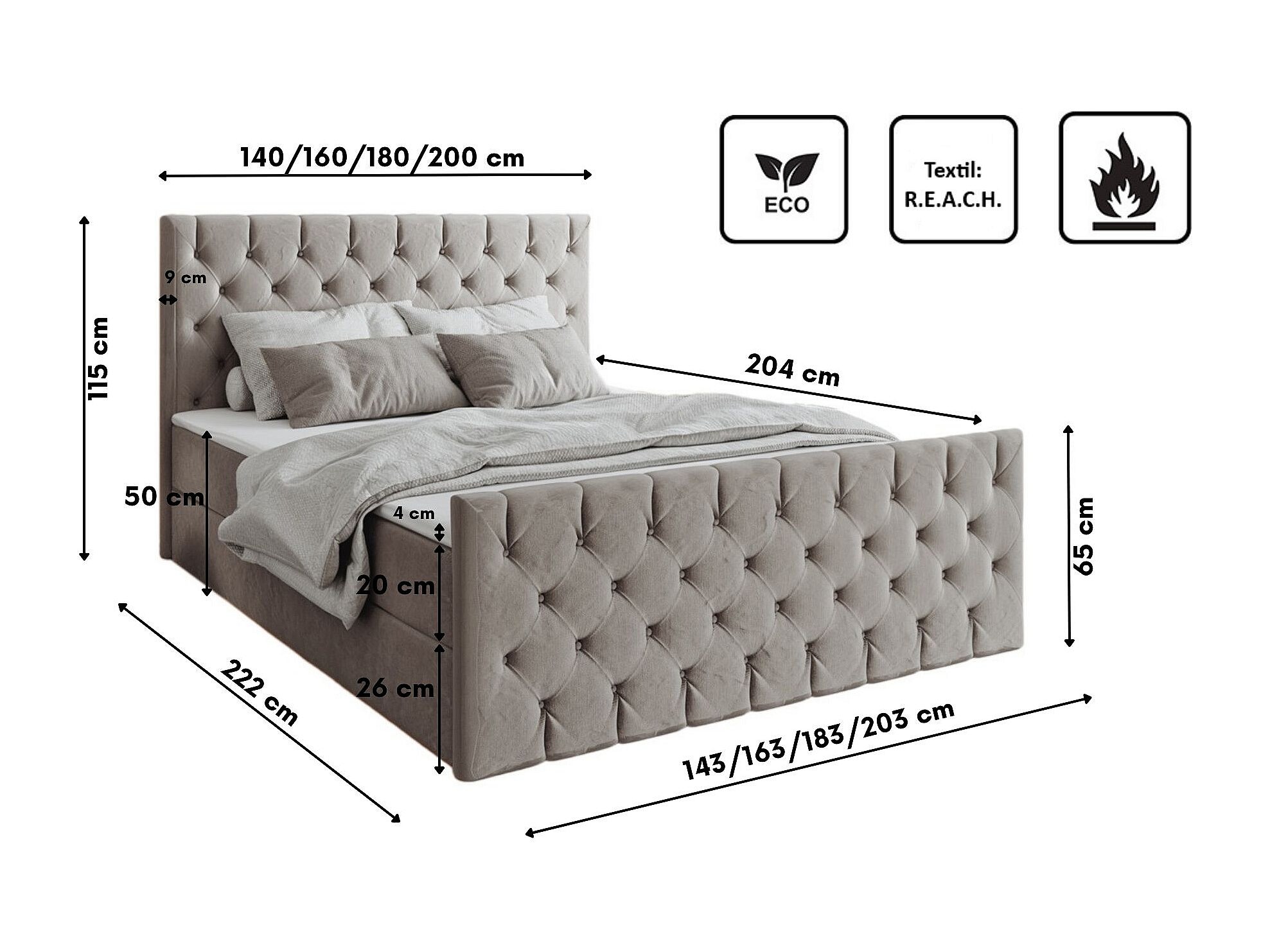 Kontinentalbett Mars Mit Bettkasten Stoff Riviera Beige 200x200 cm