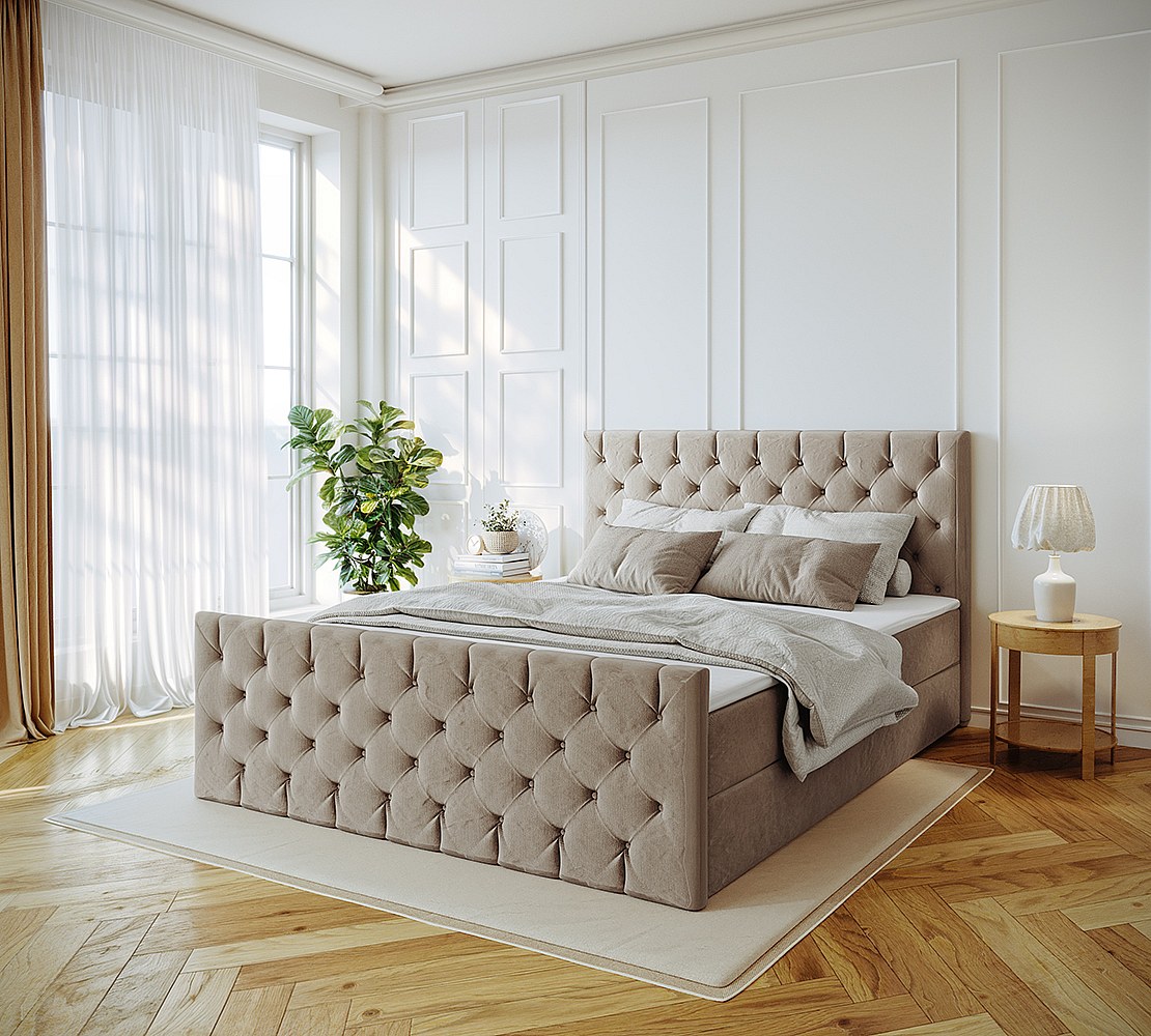 Kontinentalbett Mars Mit Bettkasten Stoff Riviera Biscut 180x200 cm