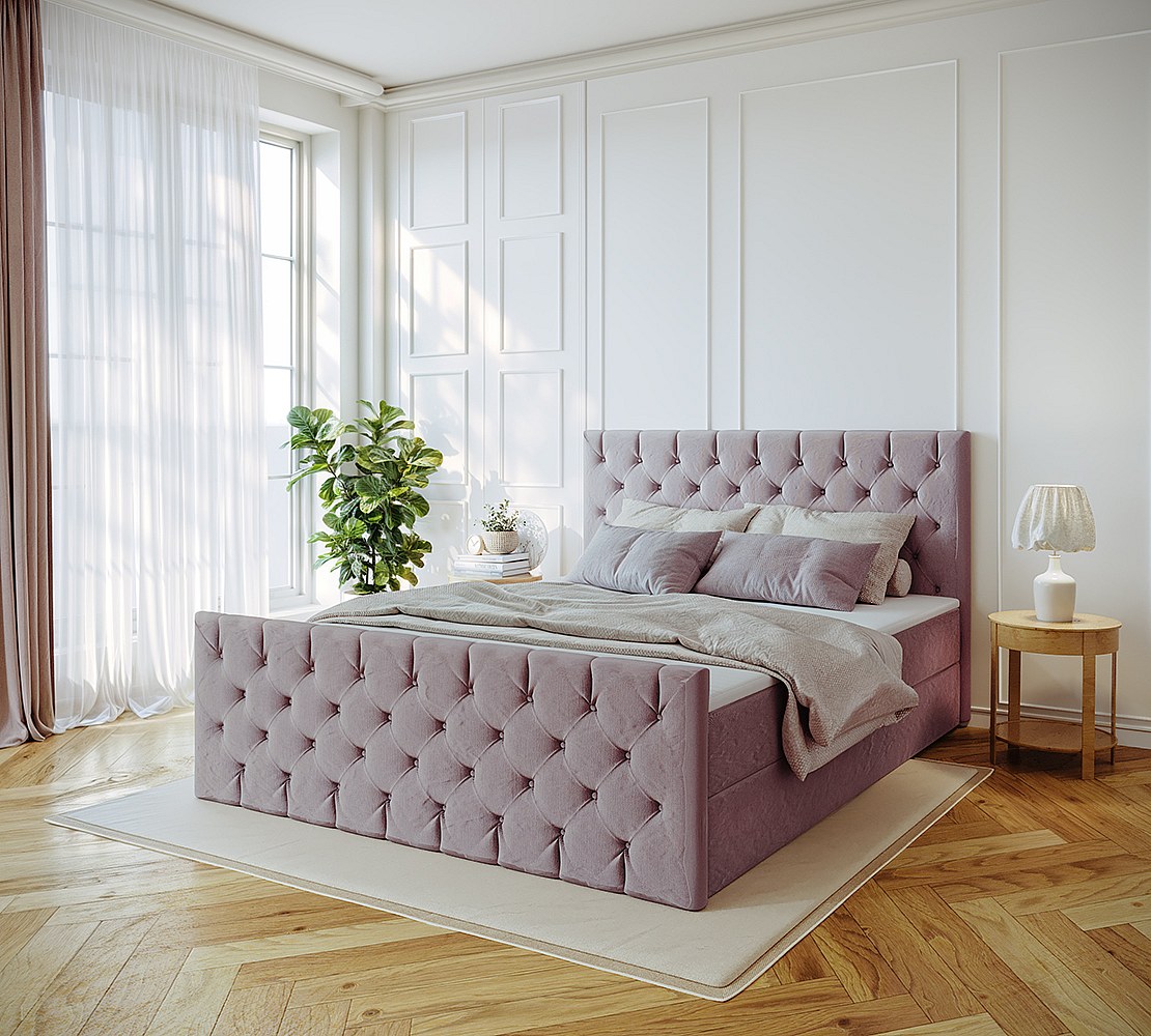 Kontinentalbett Mars Mit Bettkasten Stoff Riviera Lila 160x200 cm