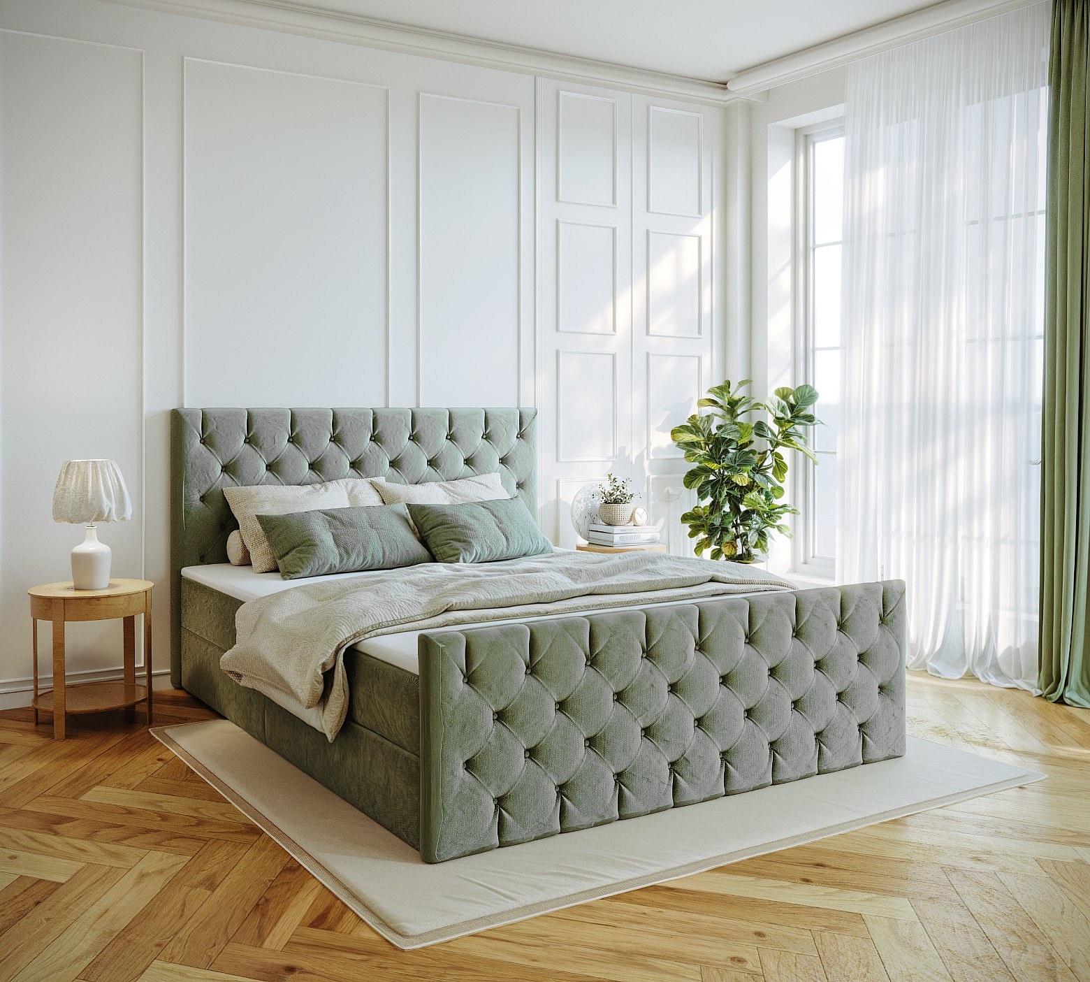 Kontinentalbett Mars Mit Bettkasten Stoff Riviera Mintz 200x200 cm