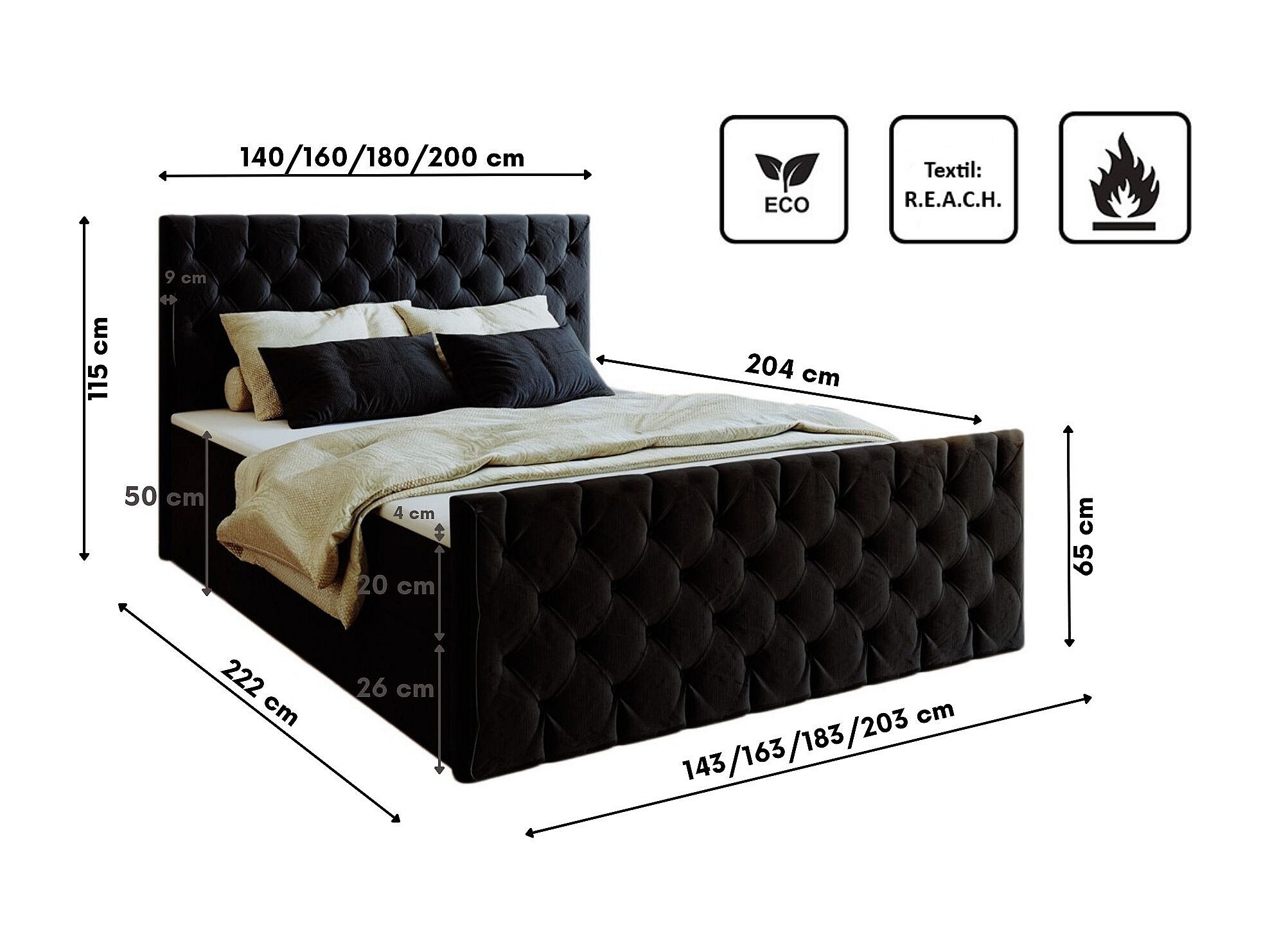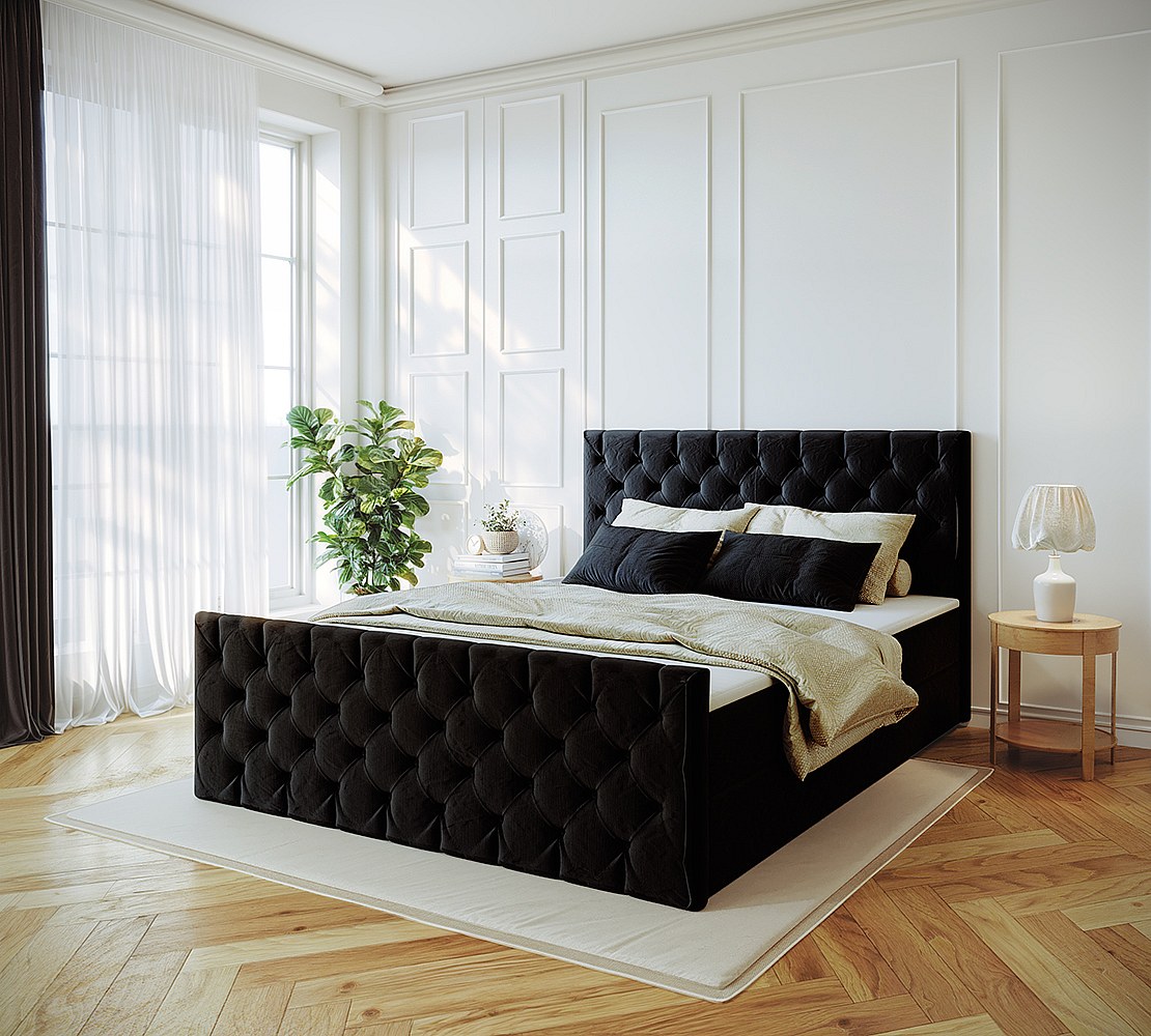 Kontinentalbett Mars Mit Bettkasten Stoff Riviera Schwarz 180x200 cm