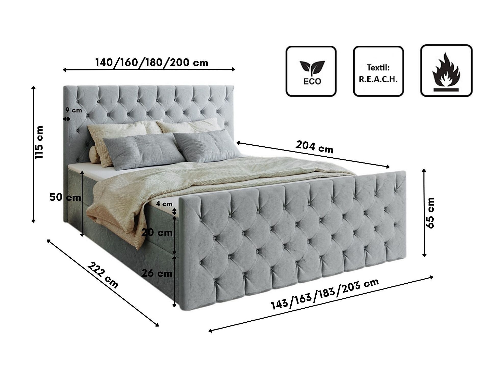 Kontinentalbett Mars Mit Bettkasten Stoff Riviera Silber 200x200 cm