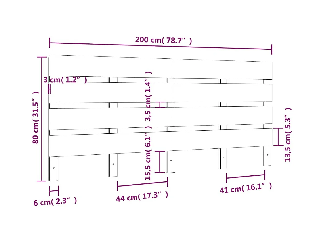 Kopfteil 200x3x80 cm Massivholz Kiefer