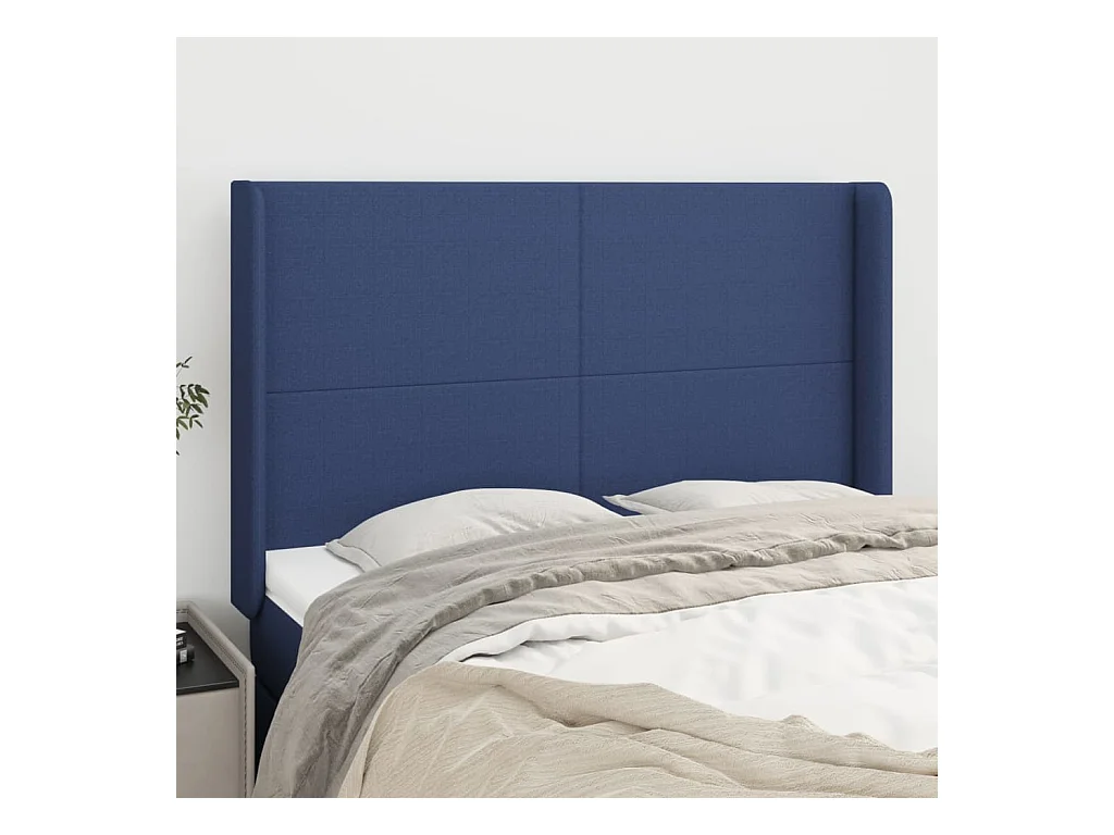 Kopfteil,Bettkopfteil mit Ohren Blau 147x16x118/128 cm Stoff -gkd331098