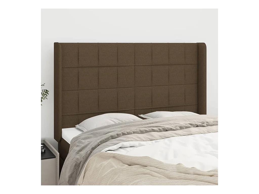 Kopfteil,Bettkopfteil mit Ohren Dunkelbraun 147x16x118/128 cm Stoff -gkd881545