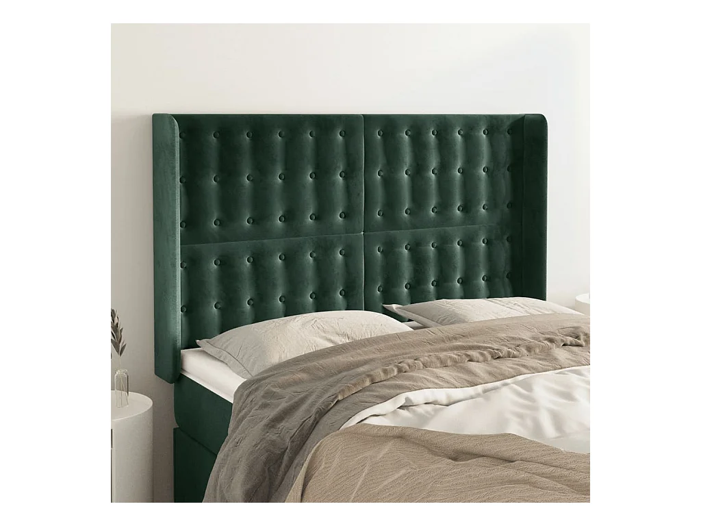 Kopfteil,Bettkopfteil mit Ohren Dunkelgrün 147x16x118/128 cm Samt -gkd530478