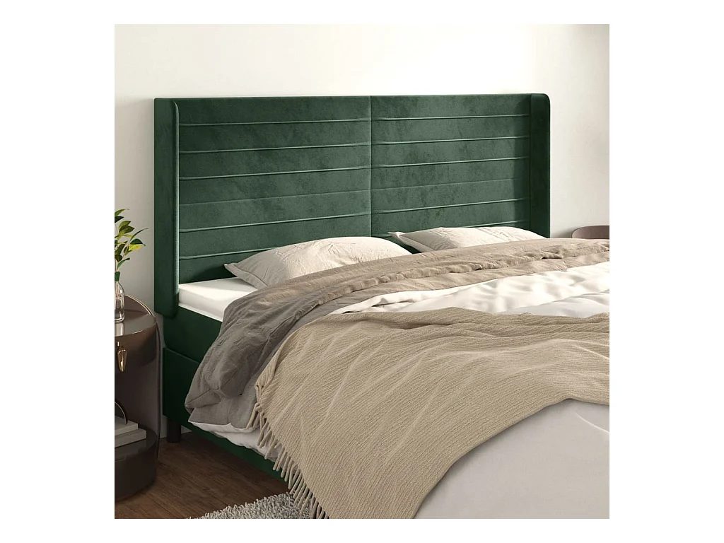 Kopfteil,Bettkopfteil mit Ohren Dunkelgrün 163x16x118/128 cm Samt -gkd492447