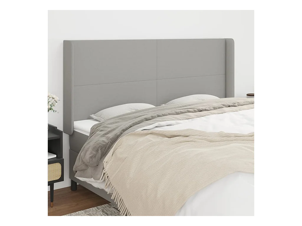 Kopfteil,Bettkopfteil mit Ohren Hellgrau 183x16x118/128 cm Stoff -gkd898092