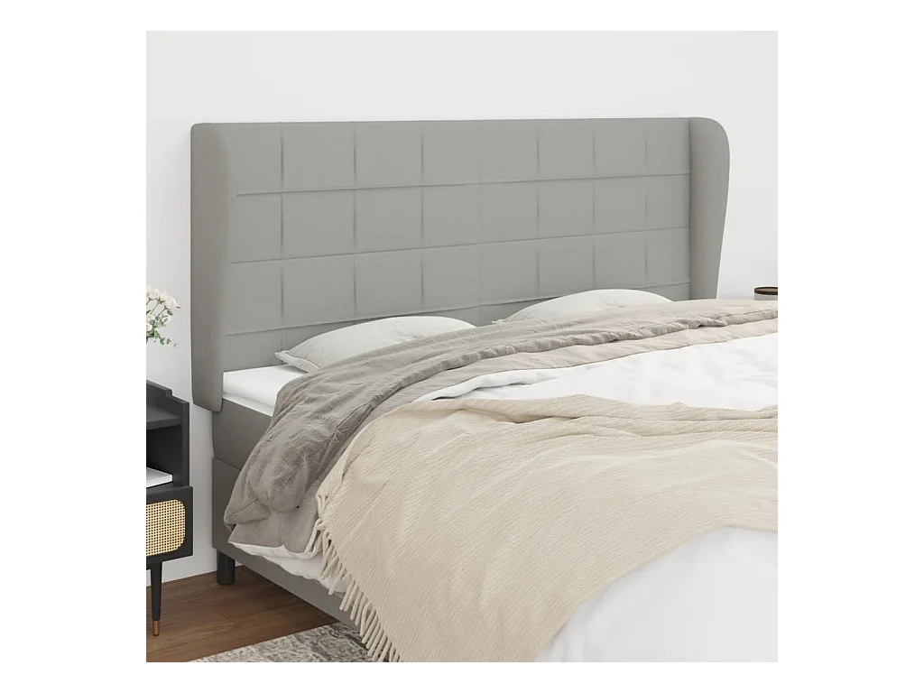 Kopfteil,Bettkopfteil mit Ohren Hellgrau 203x23x118/128 cm Stoff -gkd38105