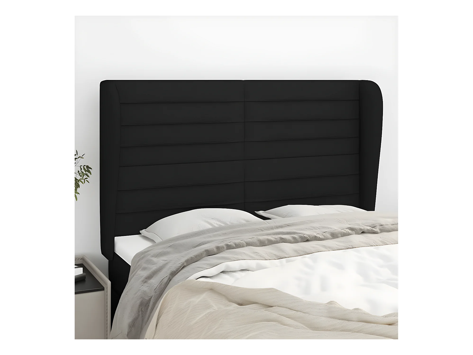 Kopfteil,Bettkopfteil mit Ohren Schwarz 147x23x118/128 cm Stoff -gkd503413