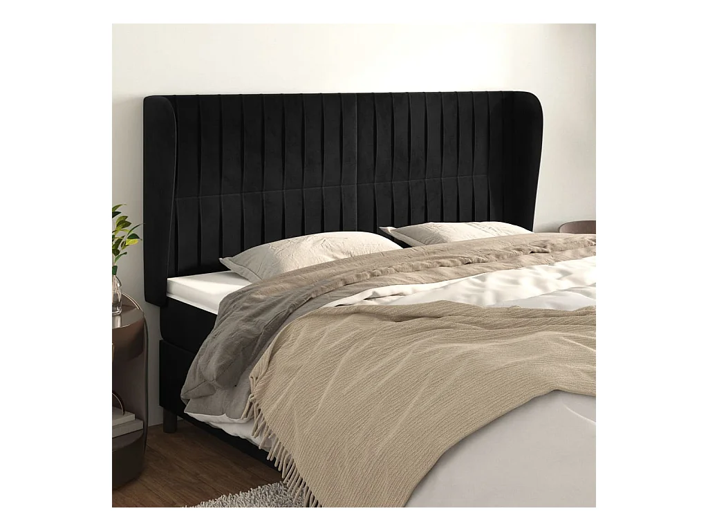 Kopfteil,Bettkopfteil mit Ohren Schwarz 163x23x118/128 cm Samt -gkd82833
