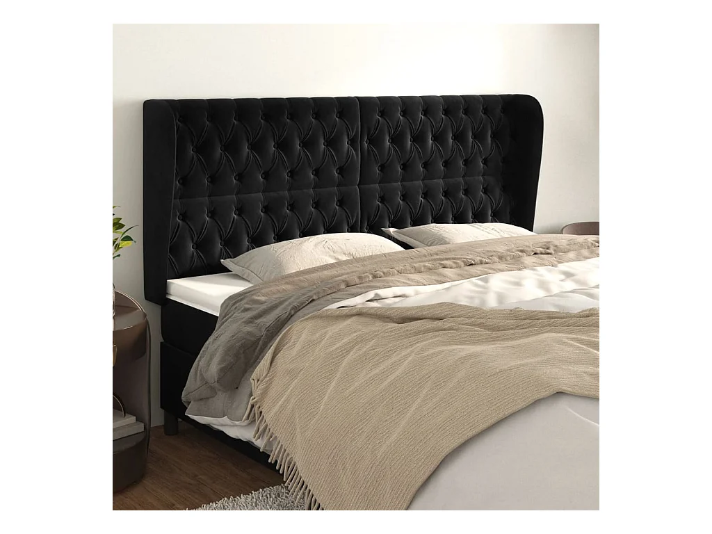 Kopfteil,Bettkopfteil mit Ohren Schwarz 183x23x118/128 cm Samt -gkd278015