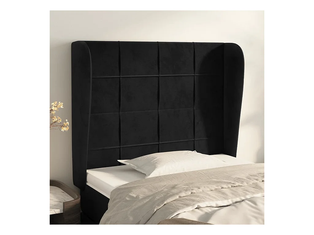Kopfteil,Bettkopfteil mit Ohren Schwarz 93x23x118/128 cm Samt -gkd687875
