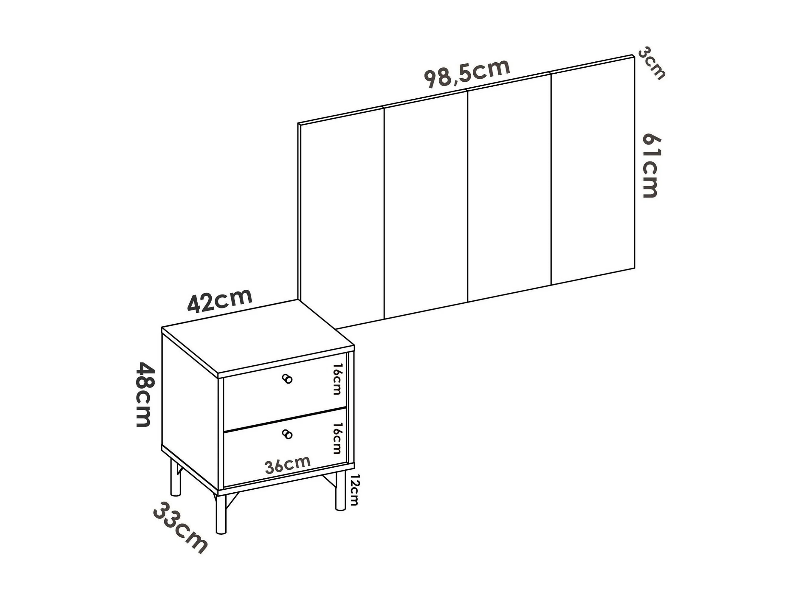 Kopfteil Colombine, Bettkopfteil für Einzelzimmer, Kopfteil für Einzelbett mit 1 Nachttisch, 99x3h61 cm, Eiche und Anthrazit und Anthrazit