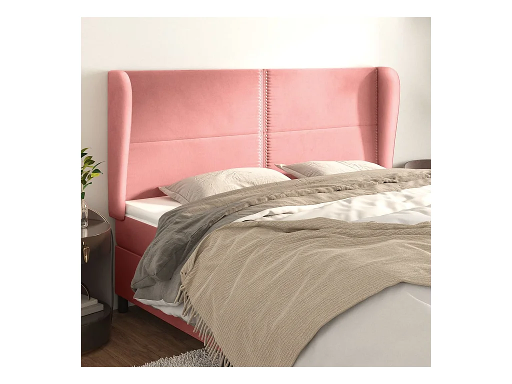Kopfteil für Bett | Bett-Kopfteil mit Ohren Rosa 203x23x118/128 cm Samt -MN226242