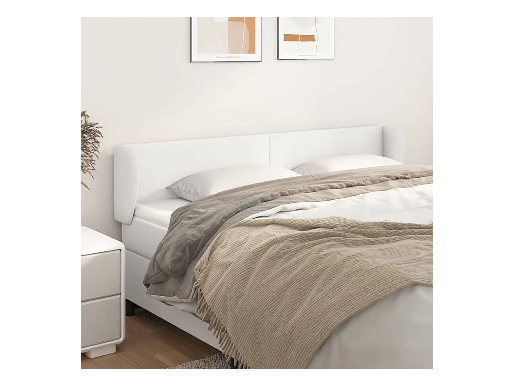Kopfteil für Bett | Bett-Kopfteil mit Ohren Weiß 203x23x78/88 cm Kunstleder -MN808950