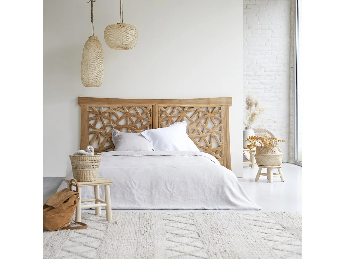 Kopfteil für Bett Bettkopfteil Doppelbett eckig 210 200 Teak Massiv Massivholz