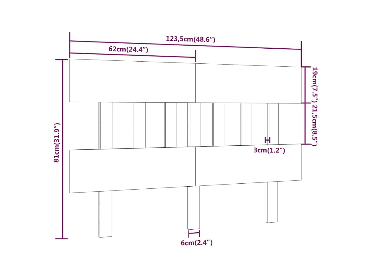 Kopfteil Grau 123,5x3x81 cm Massivholz Kiefer