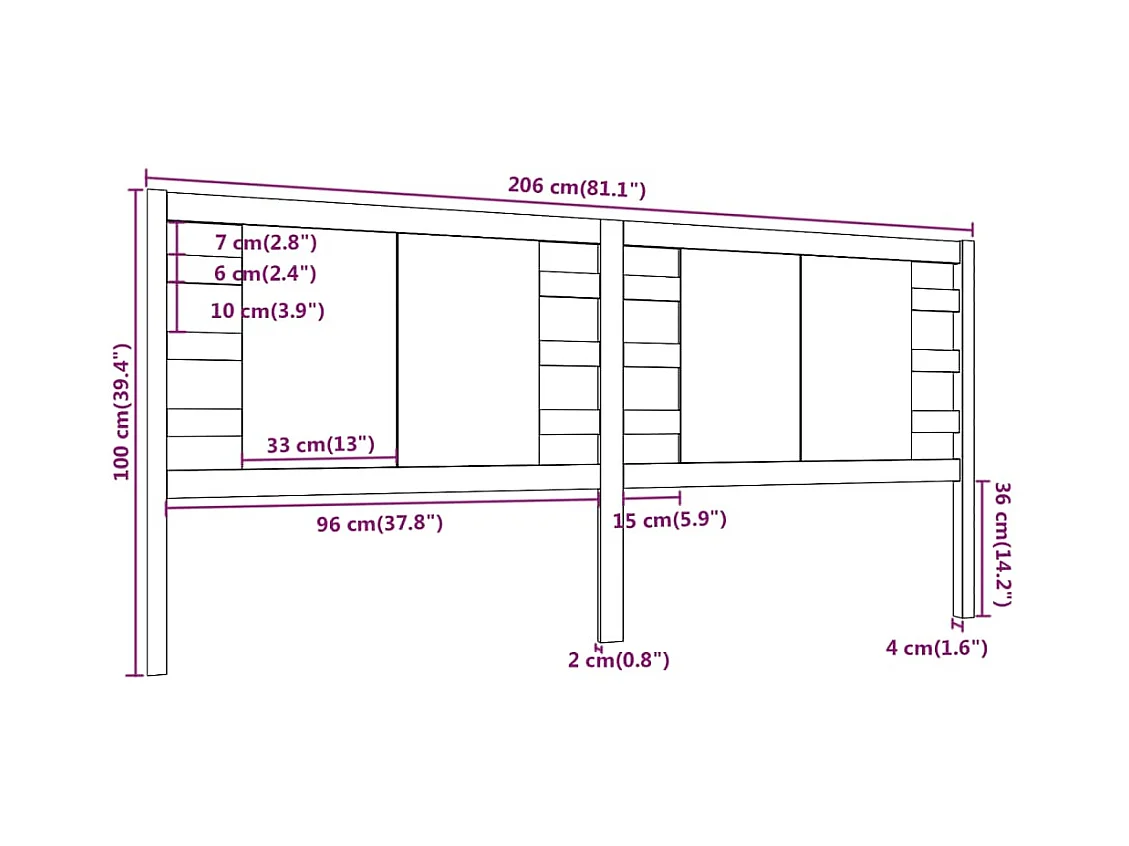 Kopfteil Honigbraun 206x4x100 cm Massivholz Kiefer