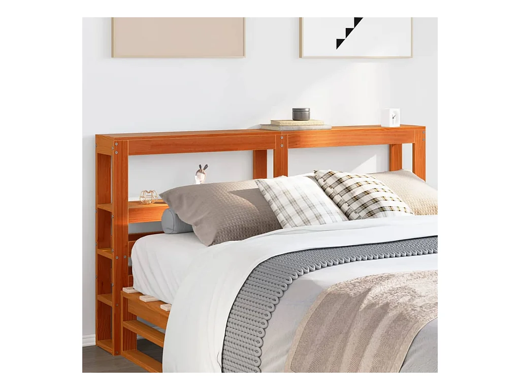Kopfteil mit Ablagen Wachsbraun 135 cm Massivholz Kiefer