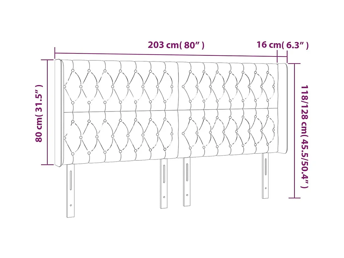 Kopfteil mit Ohren Schwarz 203x16x118/128 cm Samt