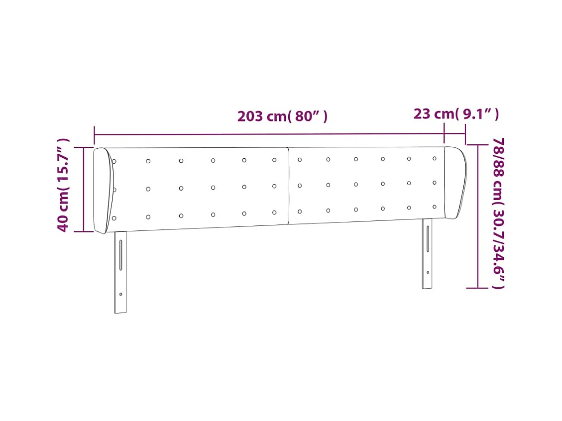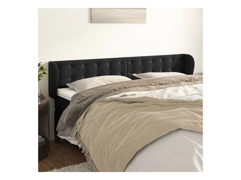 Kopfteil mit Ohren Schwarz 203x23x78/88 cm Samt