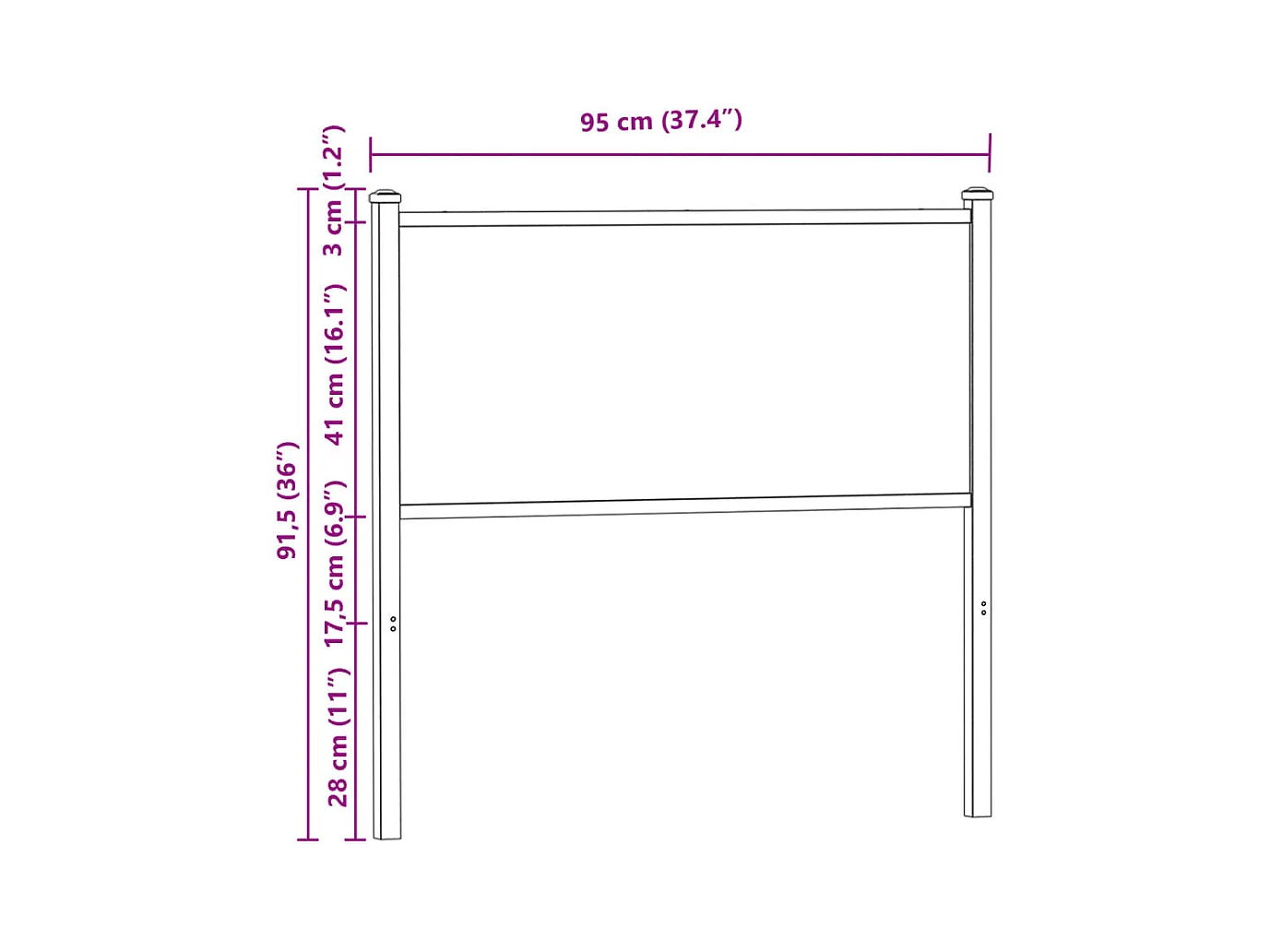 Kopfteil Räuchereiche 90 cm Holzwerkstoff und Stahl