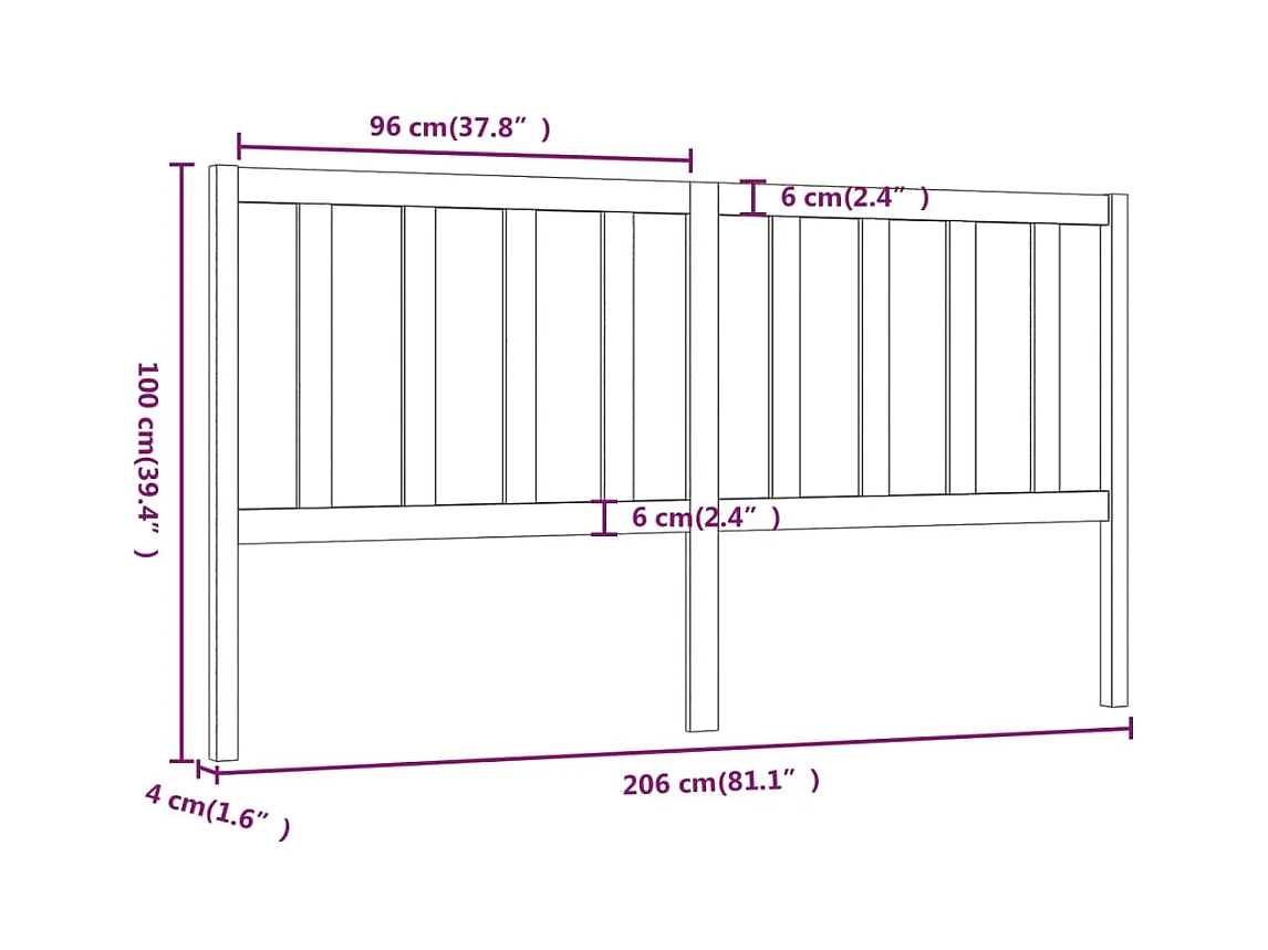 Kopfteil Schwarz 206x4x100 cm Massivholz Kiefer