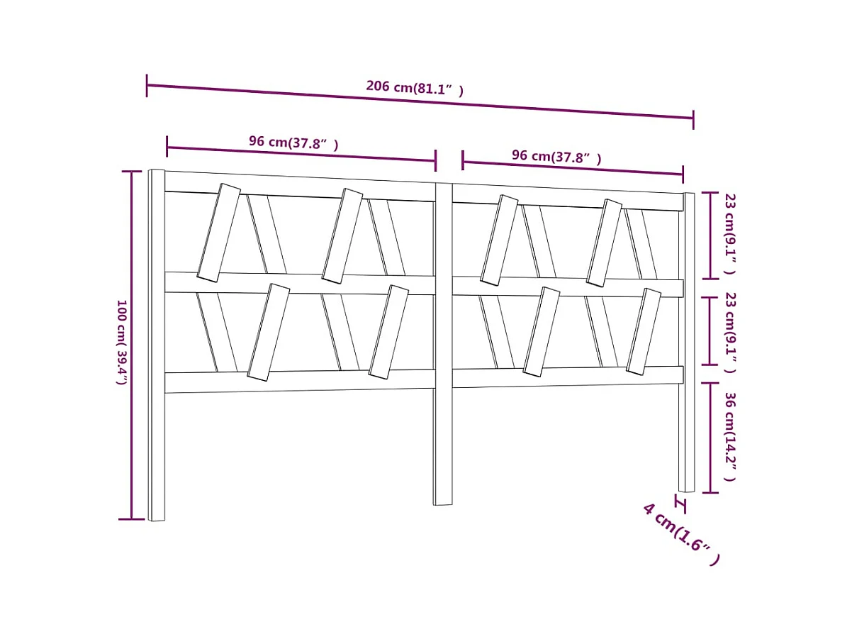 Kopfteil Schwarz 206x4x100 cm Massivholz Kiefer