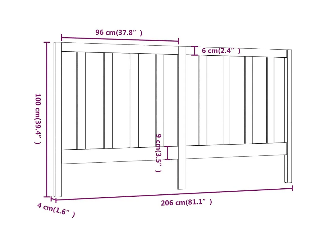 Kopfteil Schwarz 206x4x100 cm Massivholz Kiefer