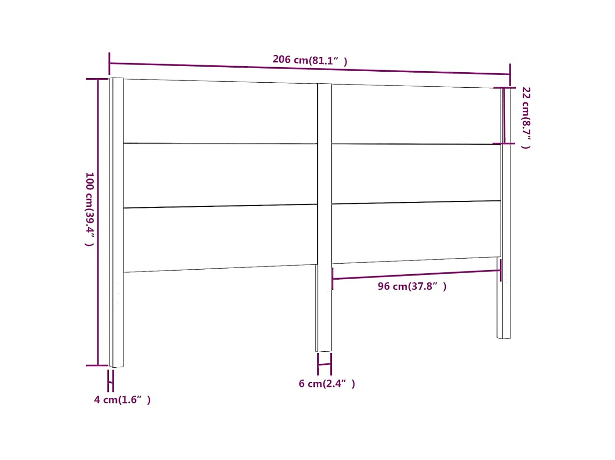 Kopfteil Weiß 206x4x100 cm Massivholz Kiefer