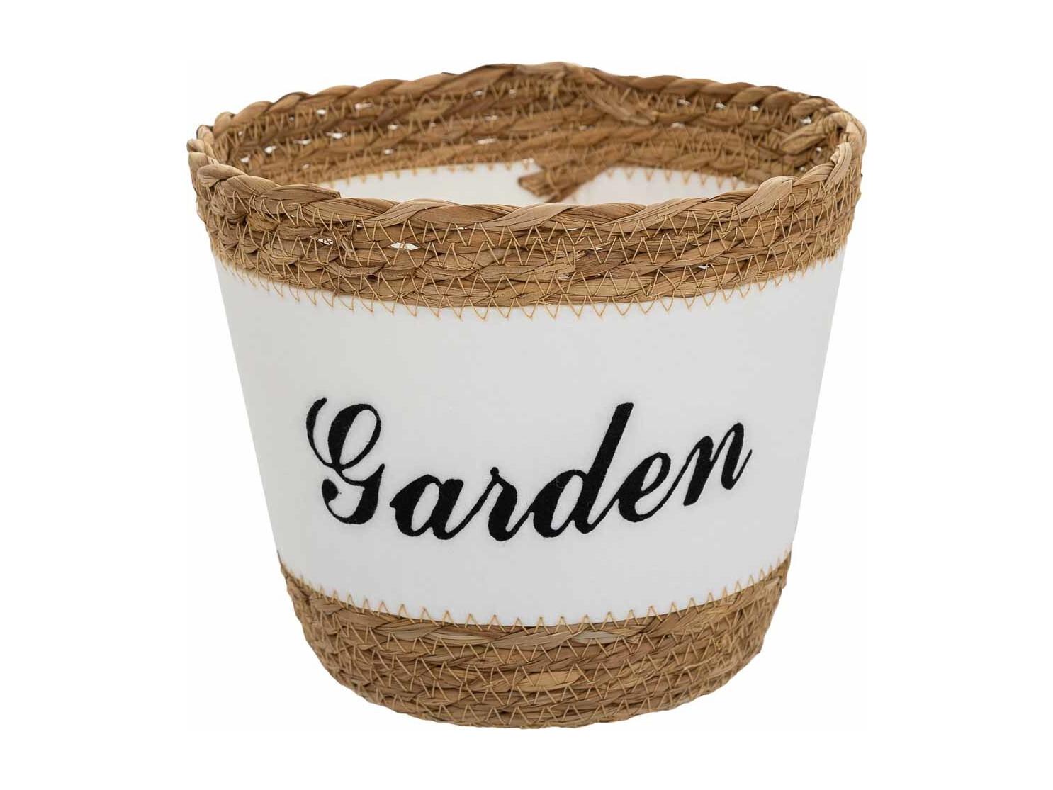 Korb aus Naturfasern und Baumwolle in Weiß D20x17