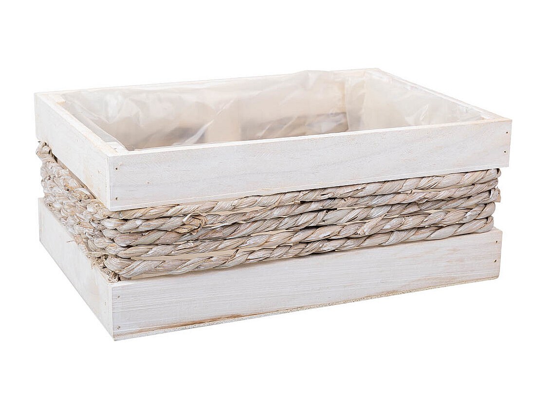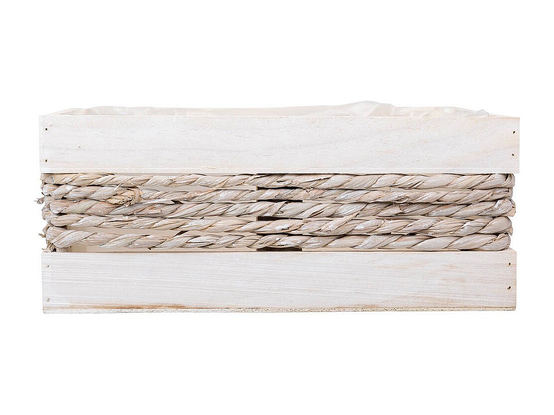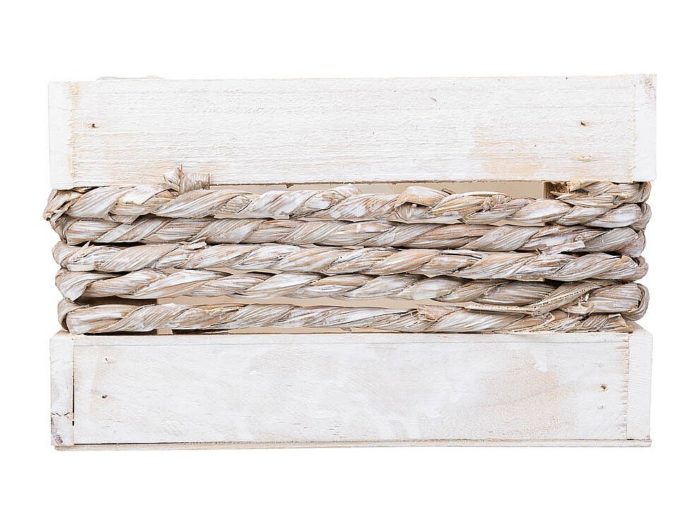 Korb aus weißem Holz und Seil, 30x20x12/27h cm