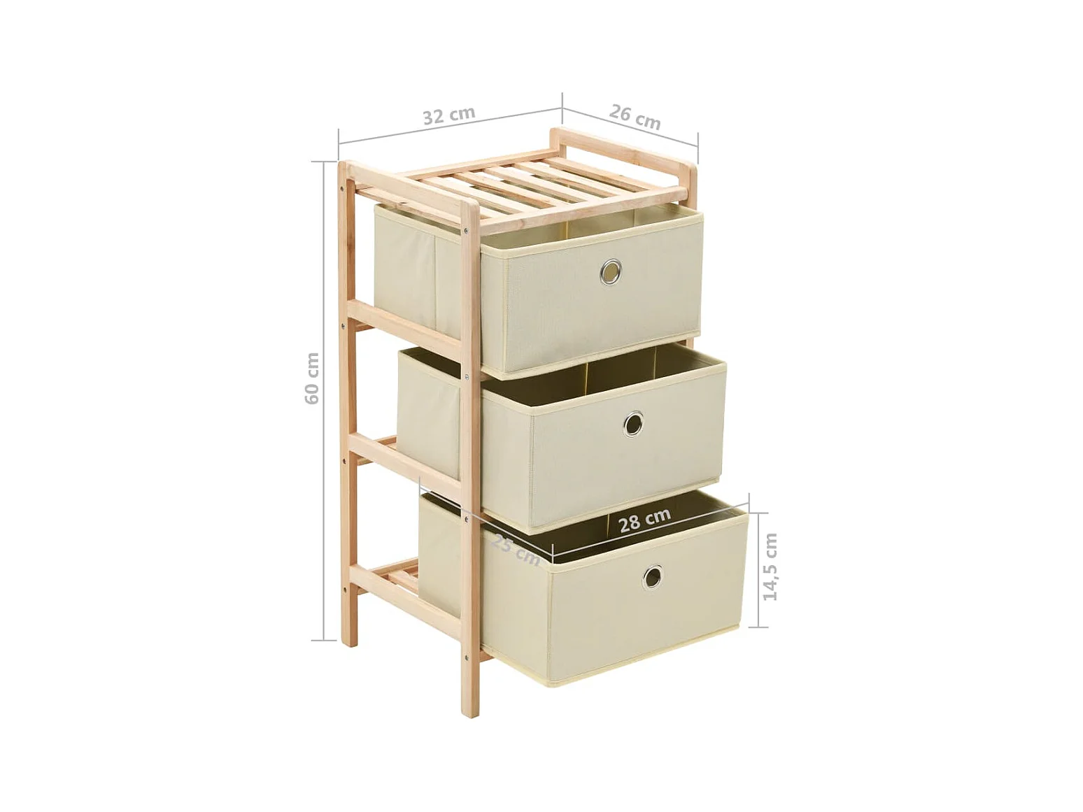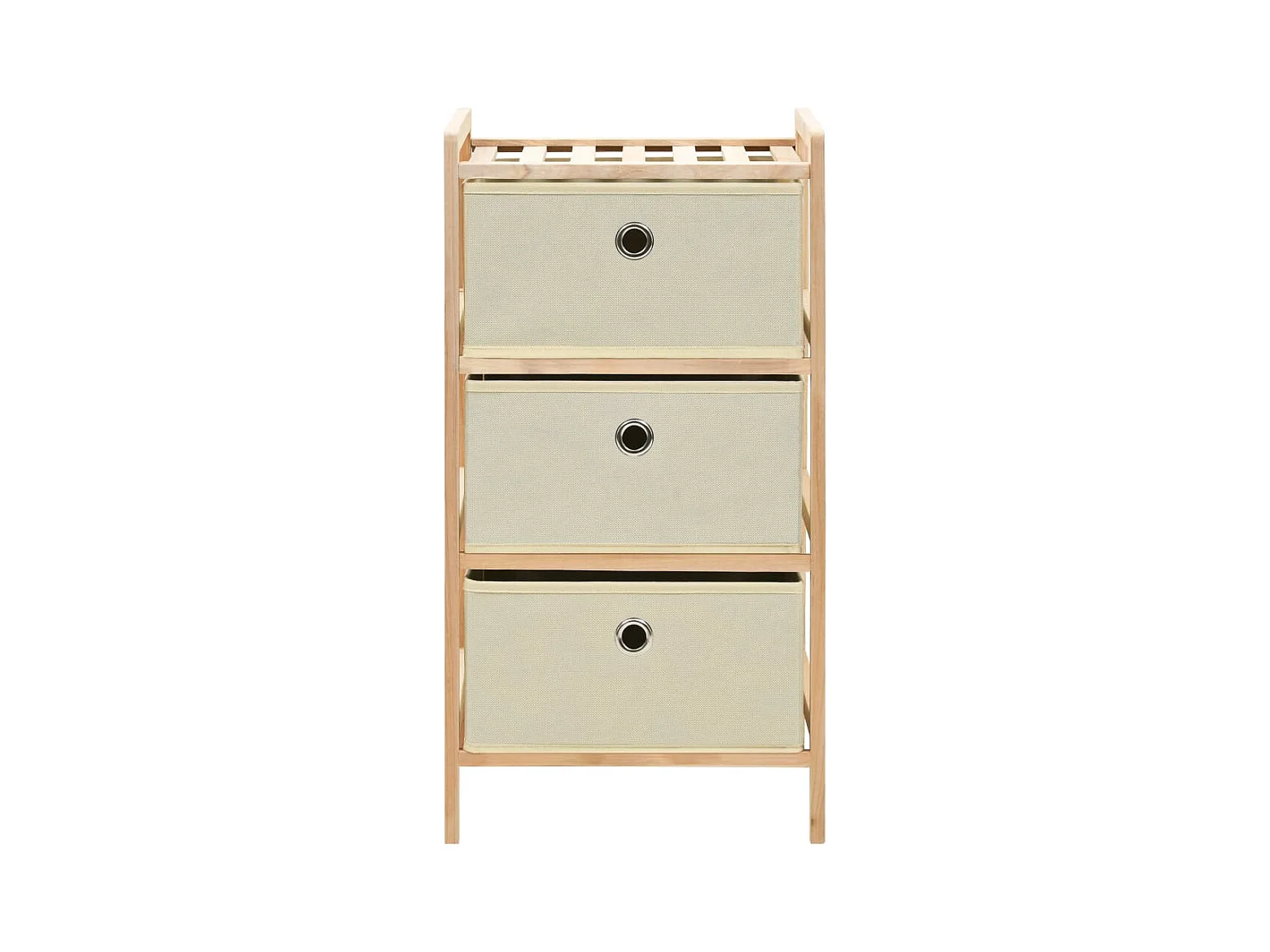 Korb-Kommode mit 3 Stoffkörben Zedernholz Beige
