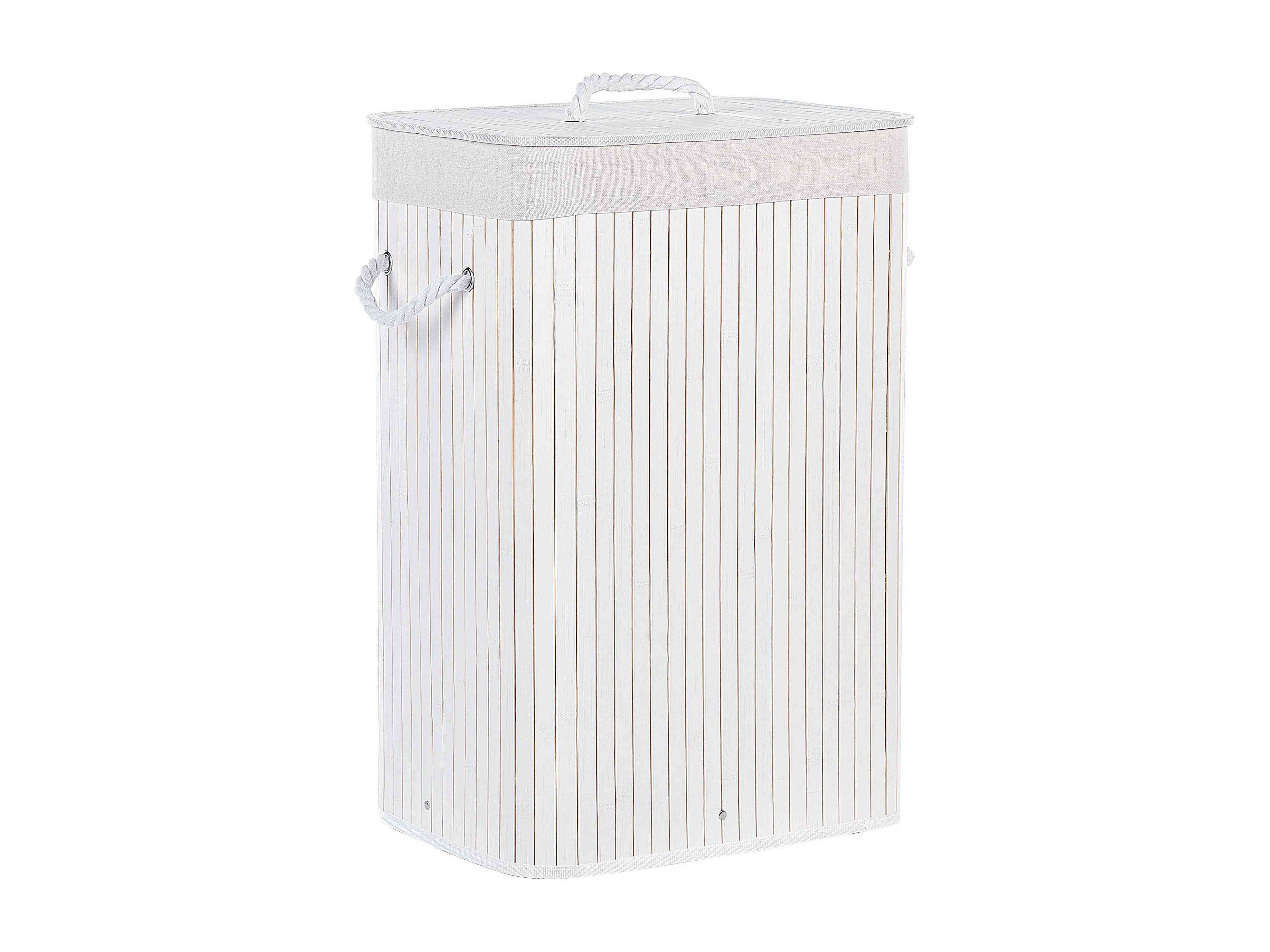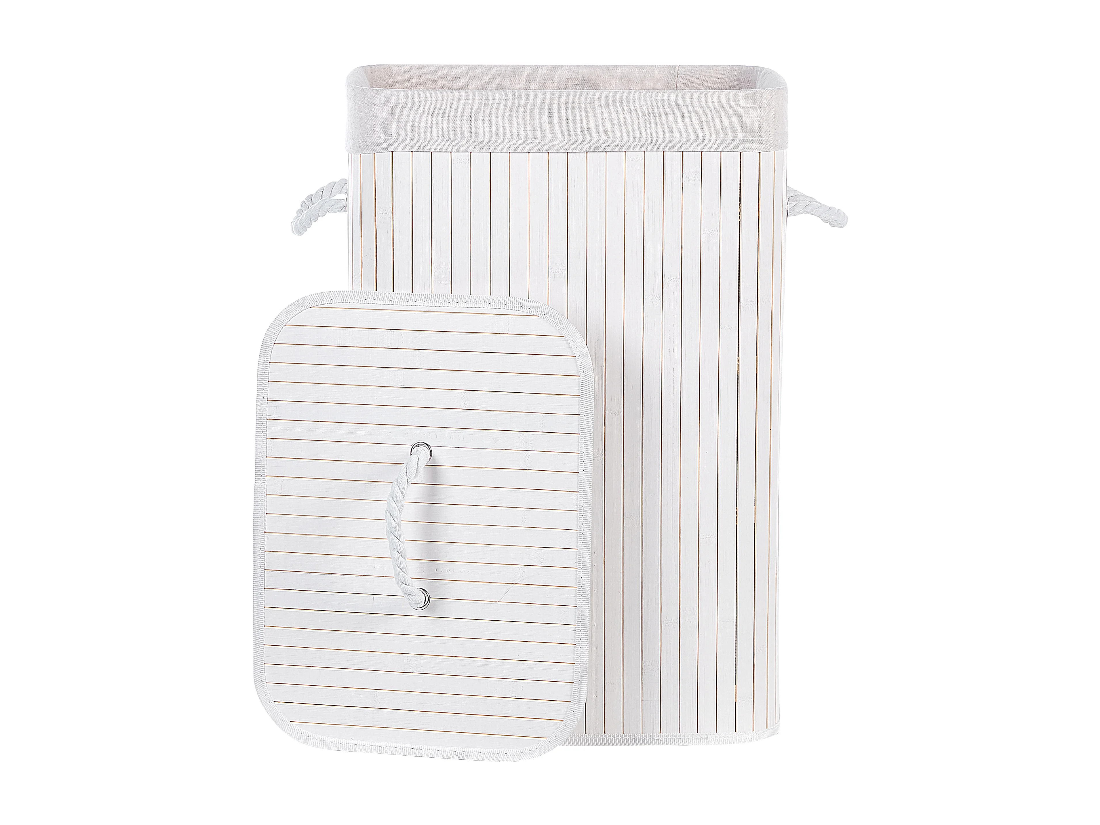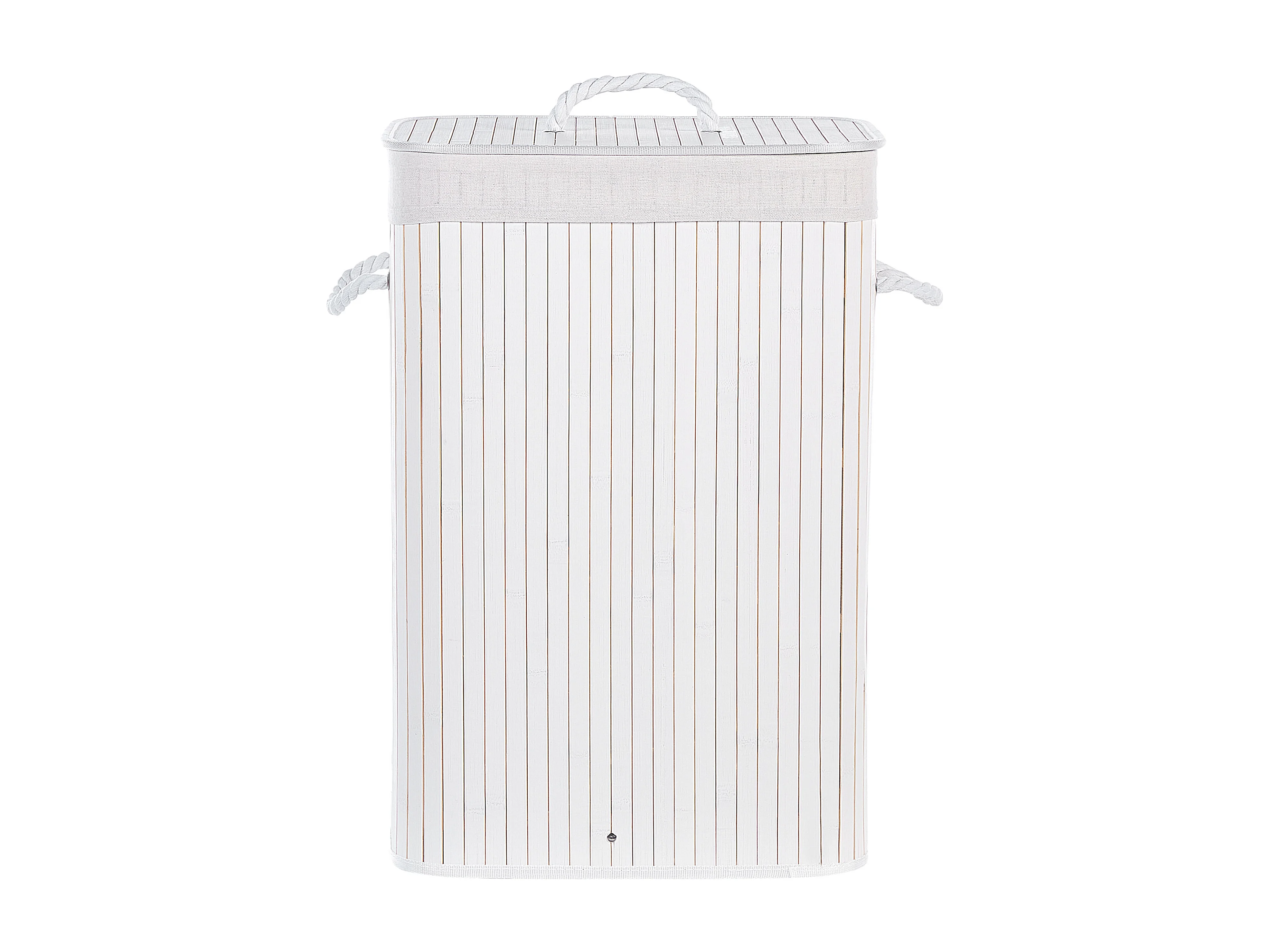 Wäschekorb Bambusholz weiß handgemacht rechteckig mit Deckel Sack Komari