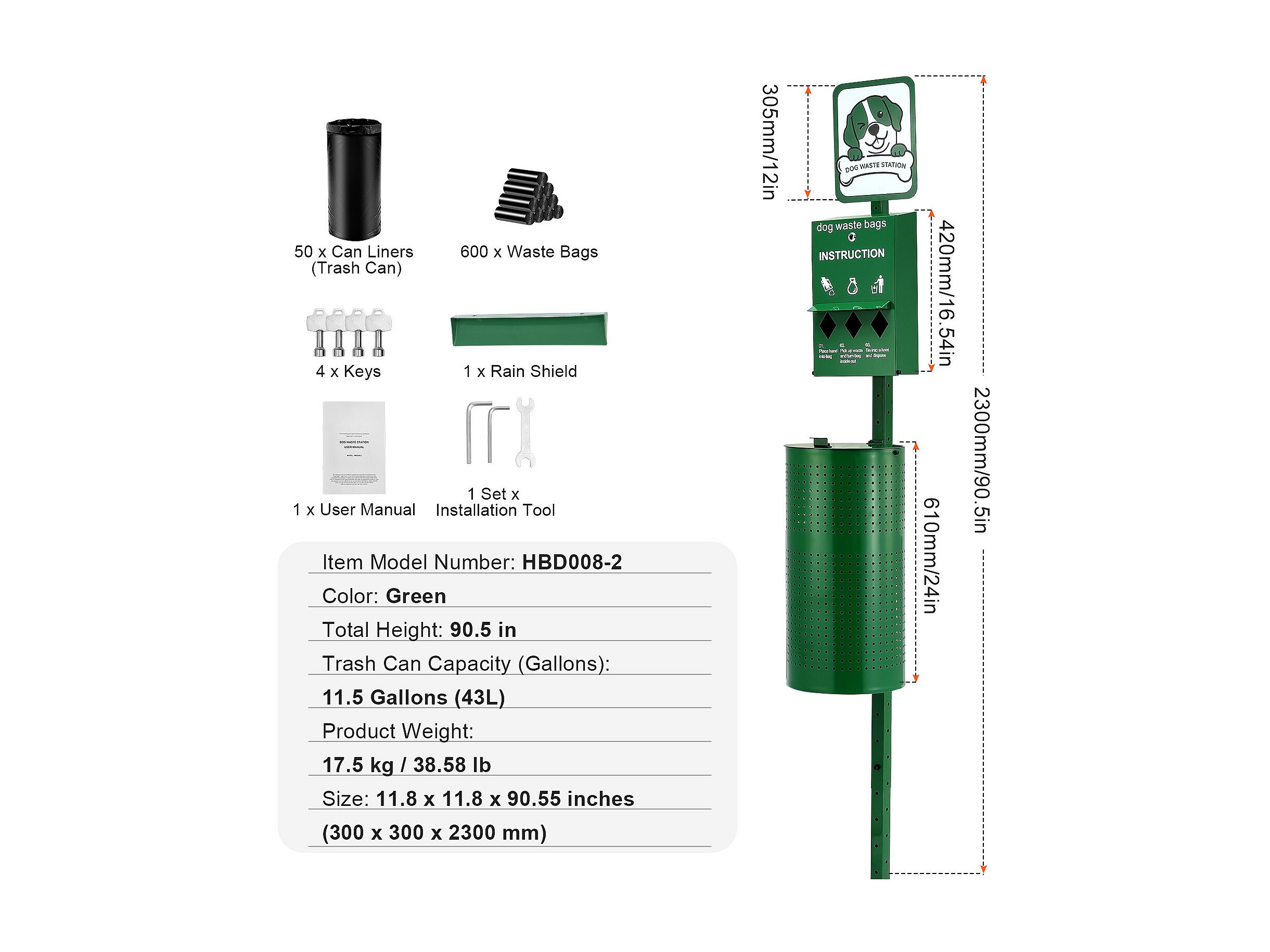 Kotbeutelspender, SucceBuy 43L Hundekot-Sammelstation mit 600 Beuteln für den Außenbereich