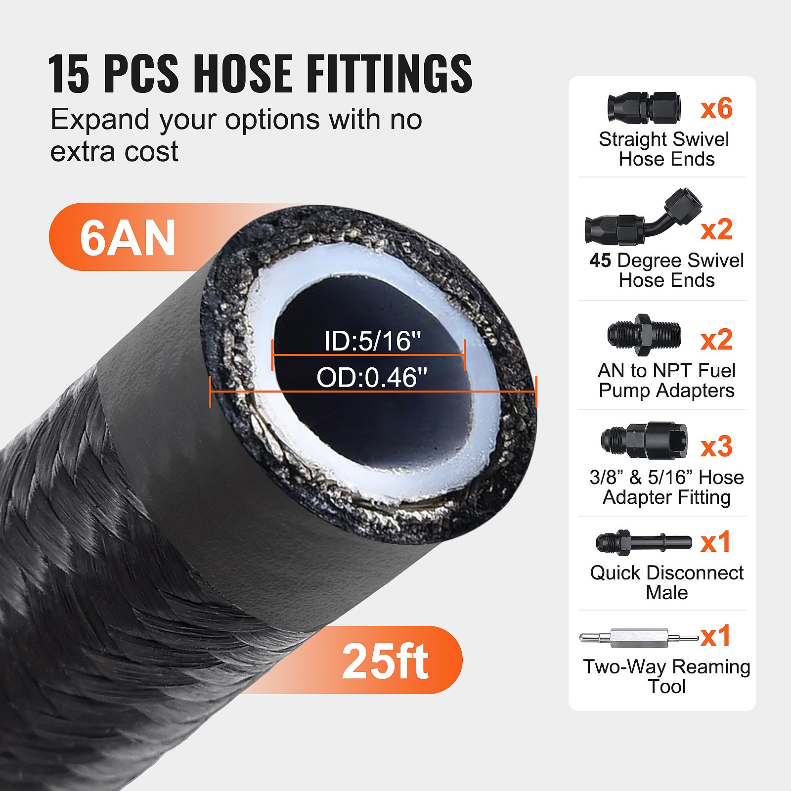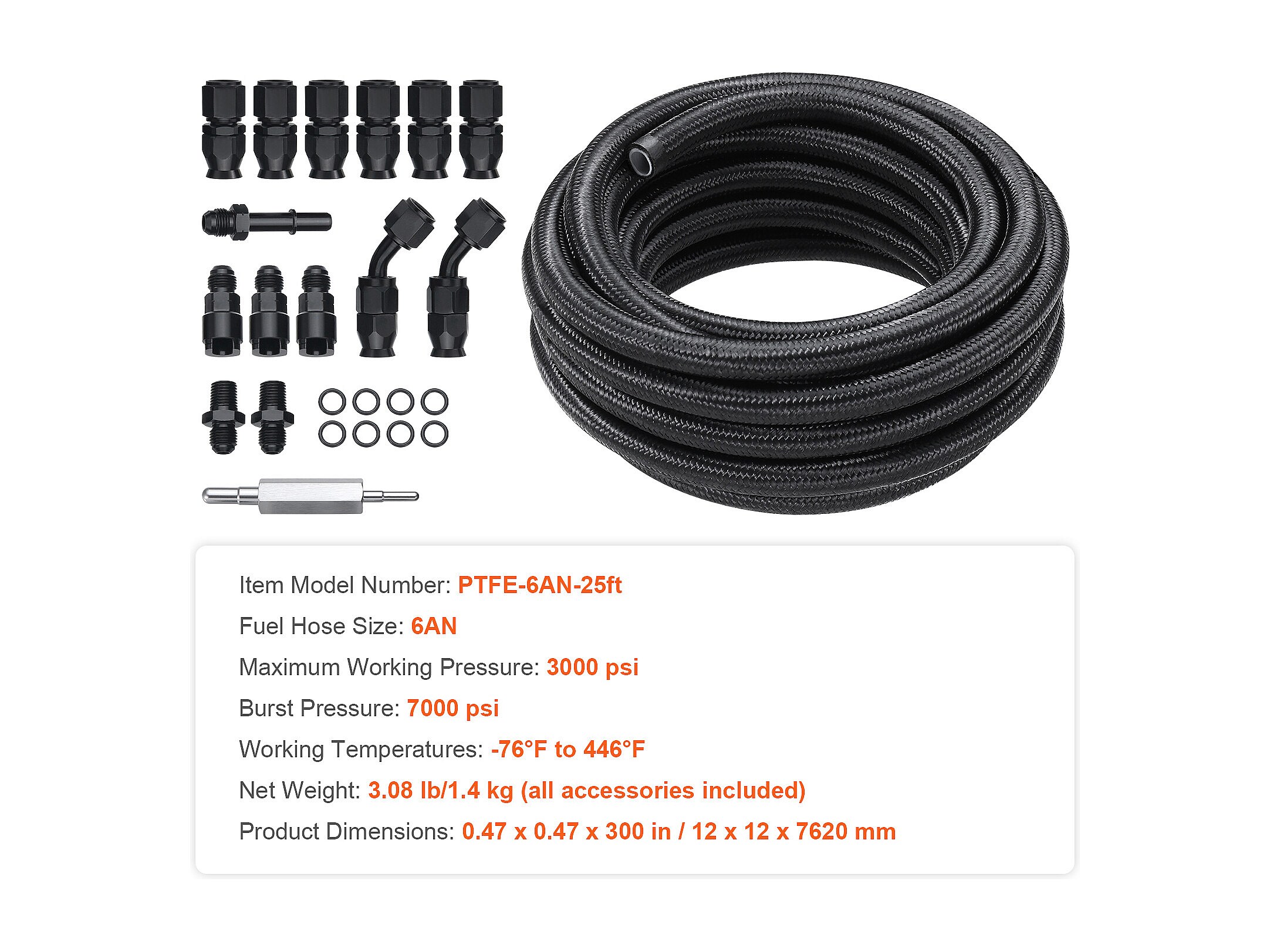 Kraftstoffleitungssatz SucceBuy 6AN 762cm, Geflochten aus Nylon in Edelstahl, 15 Rohrendverbinder