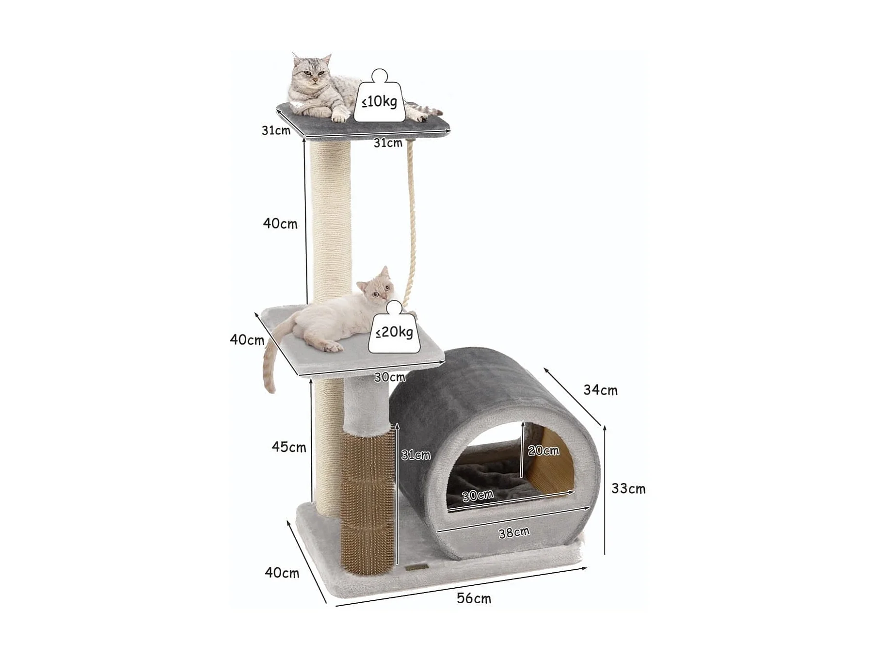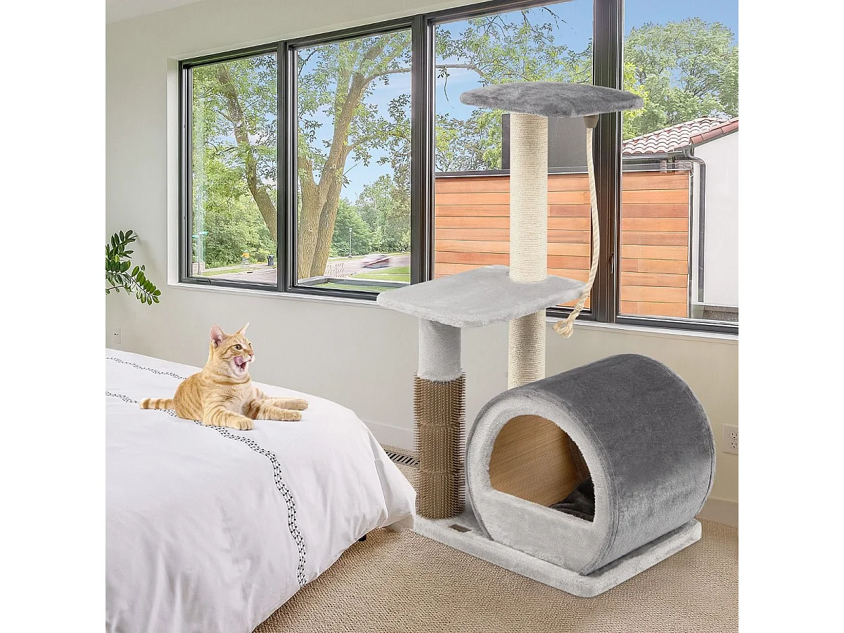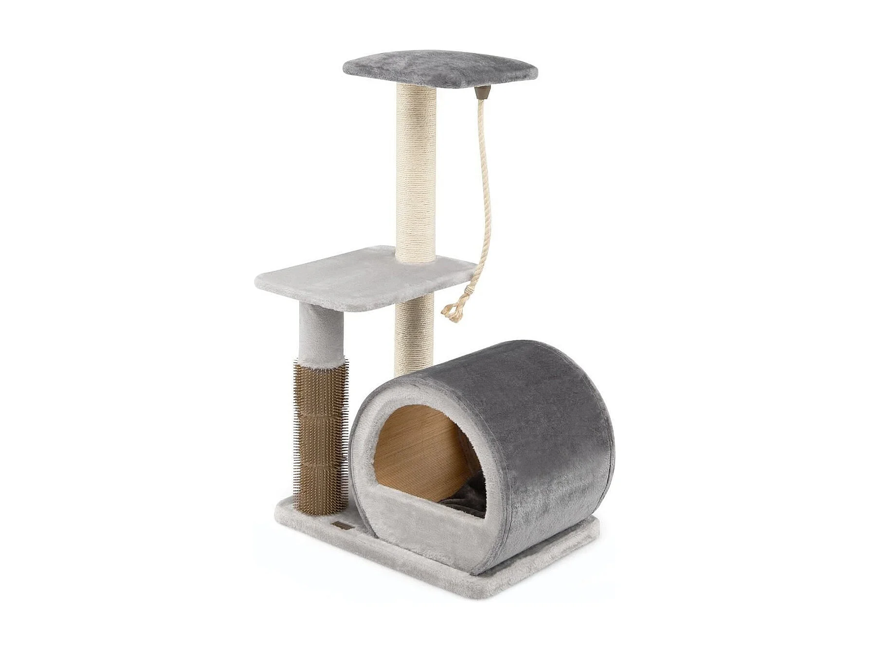 92 cm Kratzbaum mit Bambus Höhle & Kratzbrett & Pflegebürste & Ball & Plüschsitz Grau