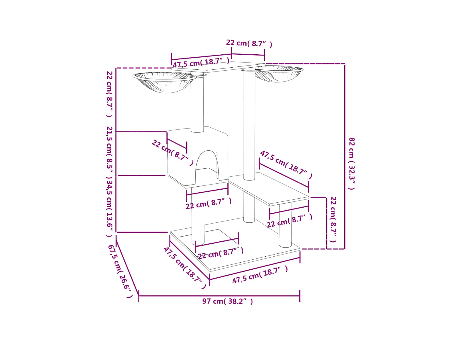 Kratzbaum mit Kratzsäulen Hellgrau 82 cm