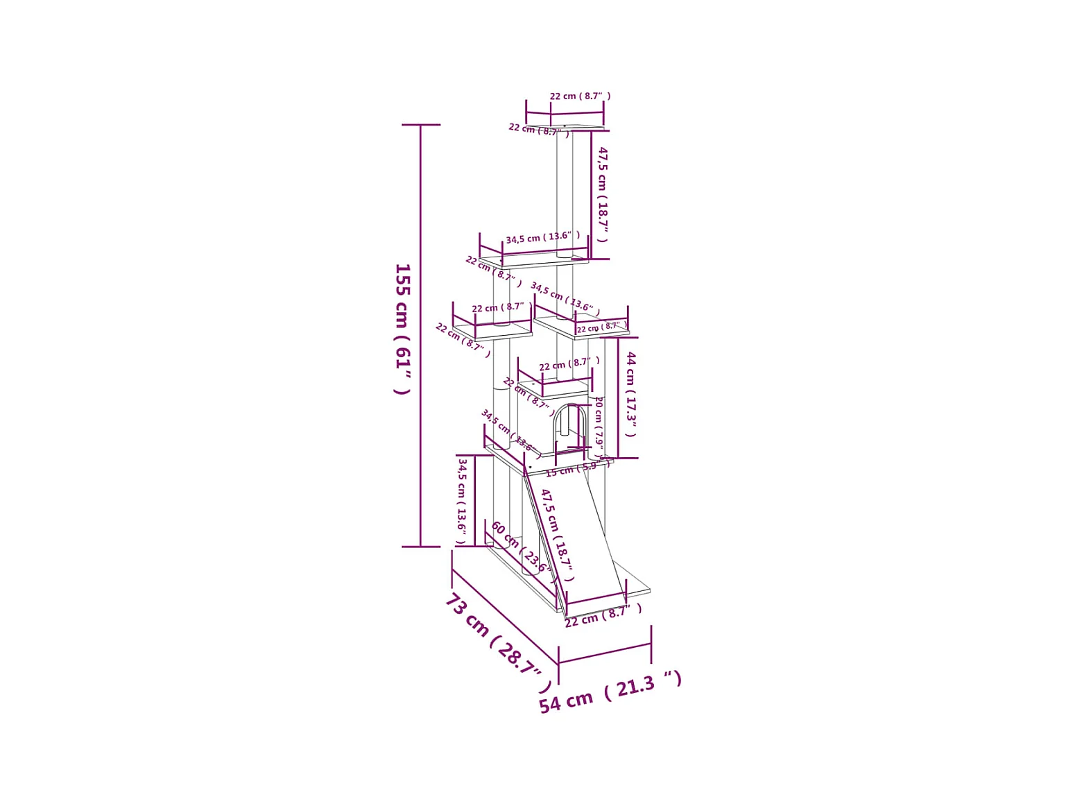 Kratzbaum mit Sisal-Kratzsäulen Dunkelgrau 155 cm