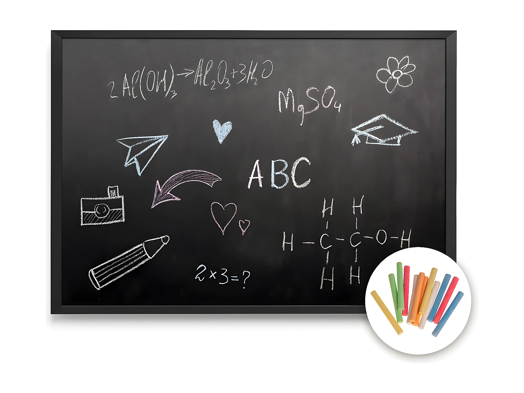 Kreidetafel mit robustem schwarzem Rahmen 60 x 40/40 x 60 + kostenlose farbige Kreide, starke Kreidetafel für Zuhause, Büro, Notizenorganisation