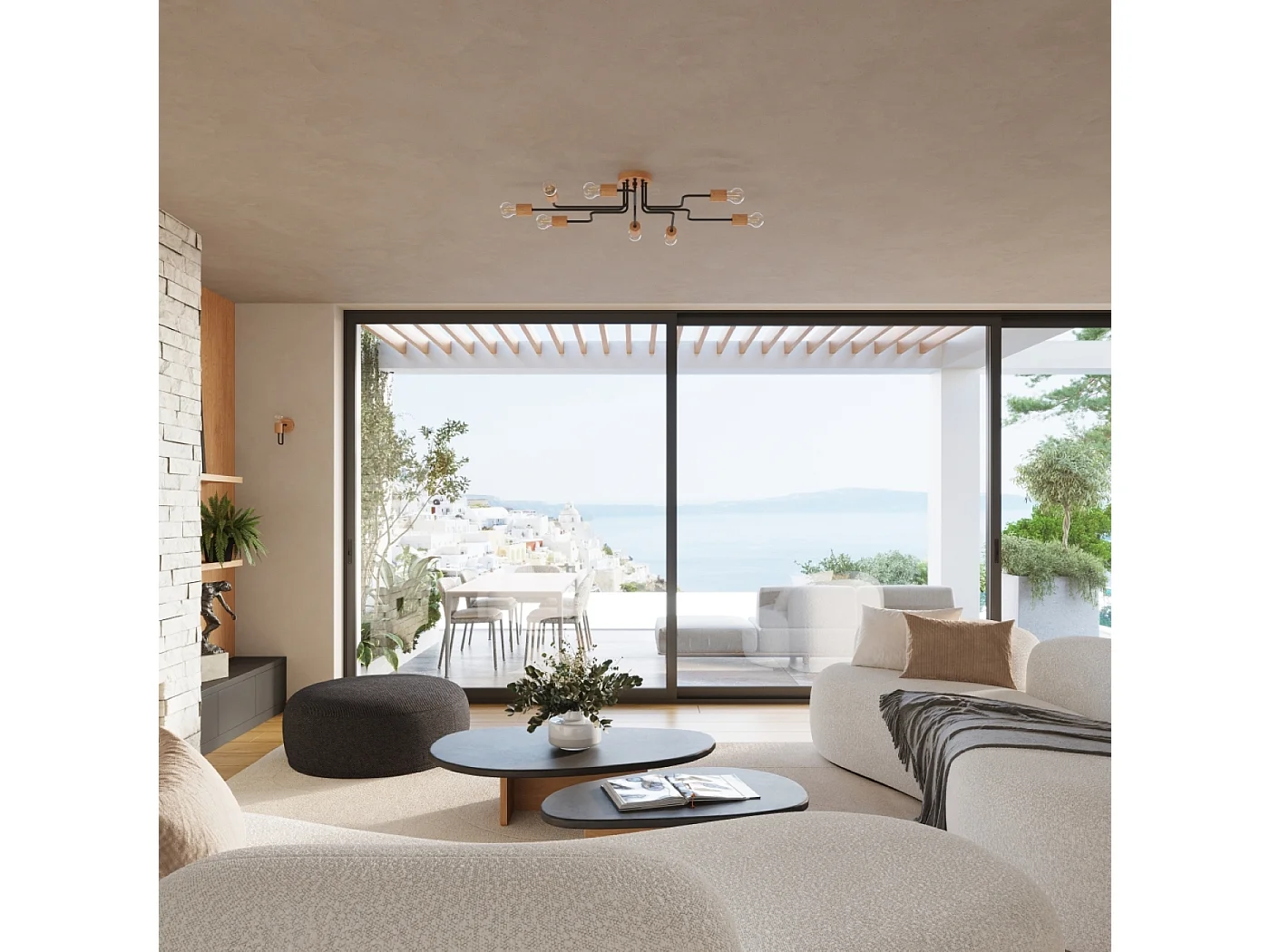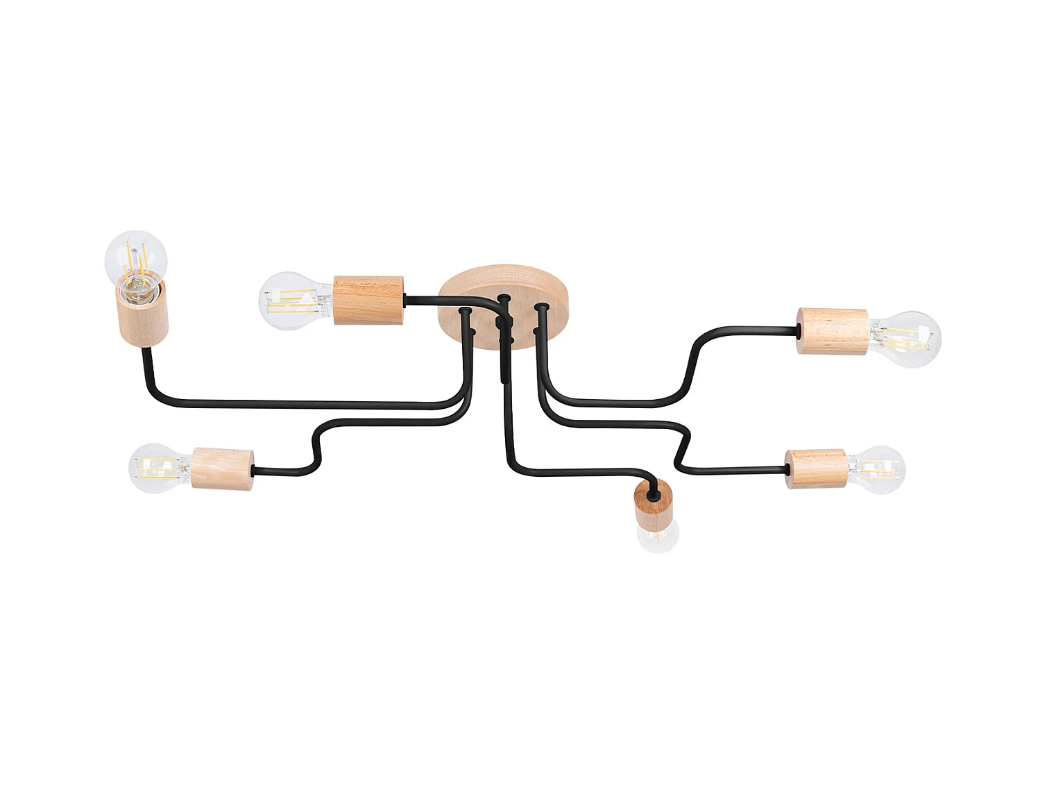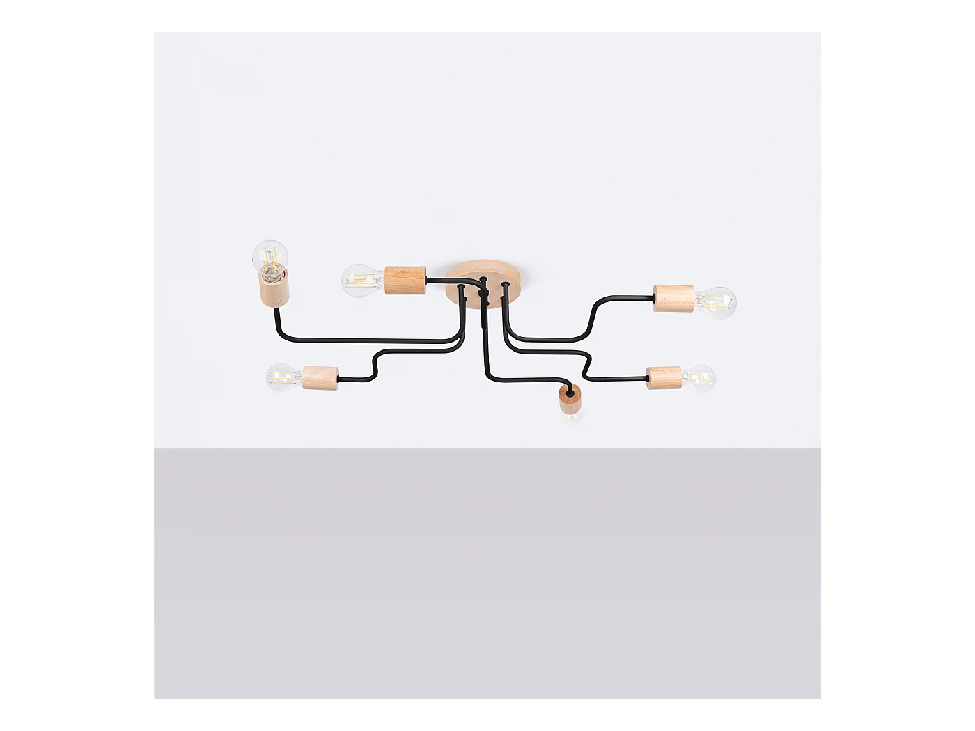 Kronleuchter Zimbo Dachboden aus Stahl/Holz - 6 lichtquellen 3000K - L.85 x H. cm - schwarz/Naturholz